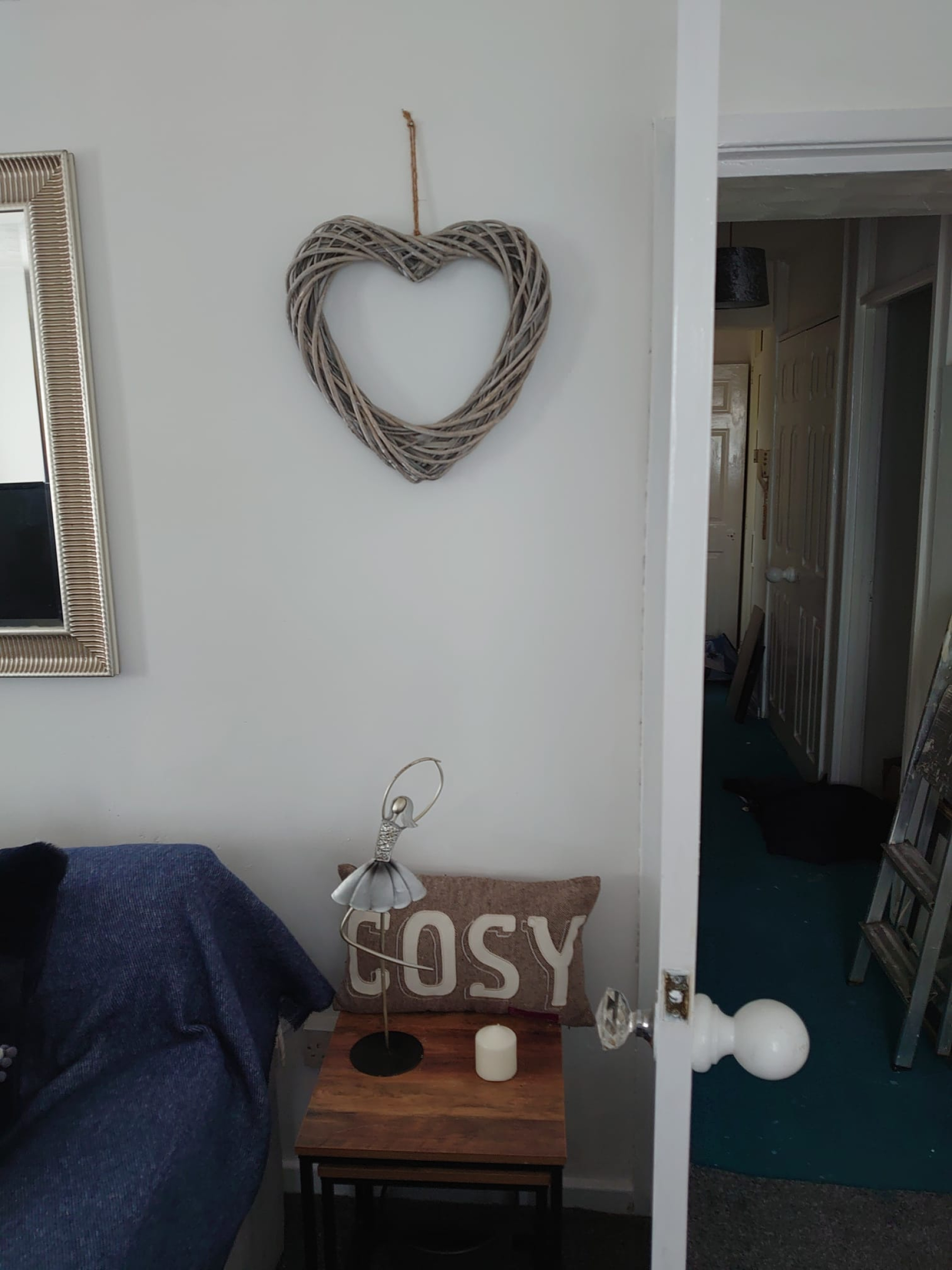 A beautifully presented three-piece suite comprising WC, vanity wash hand basin and panelled bath with mains-fed shower and attachment over. Complemented by part-tiled walls, vinyl floor covering, heated towel radiator and useful storage cupboard.