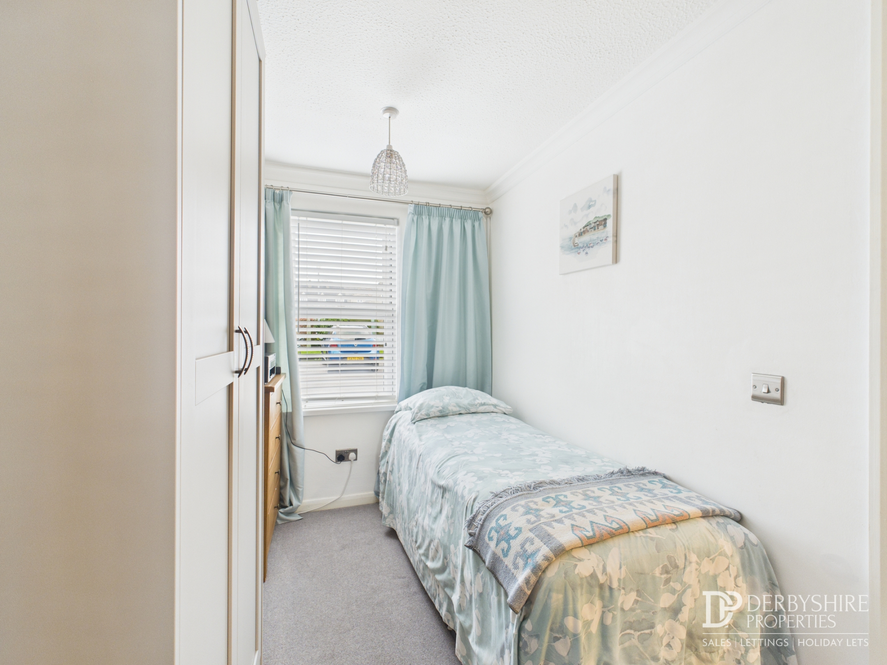 With a double-glazed window to the rear elevation, enjoying views over the communal gardens, cricket ground, and Chevin beyond. Features include a free standing oil radiator, TV point, and stylish fitted wardrobes providing excellent storage and hanging space.