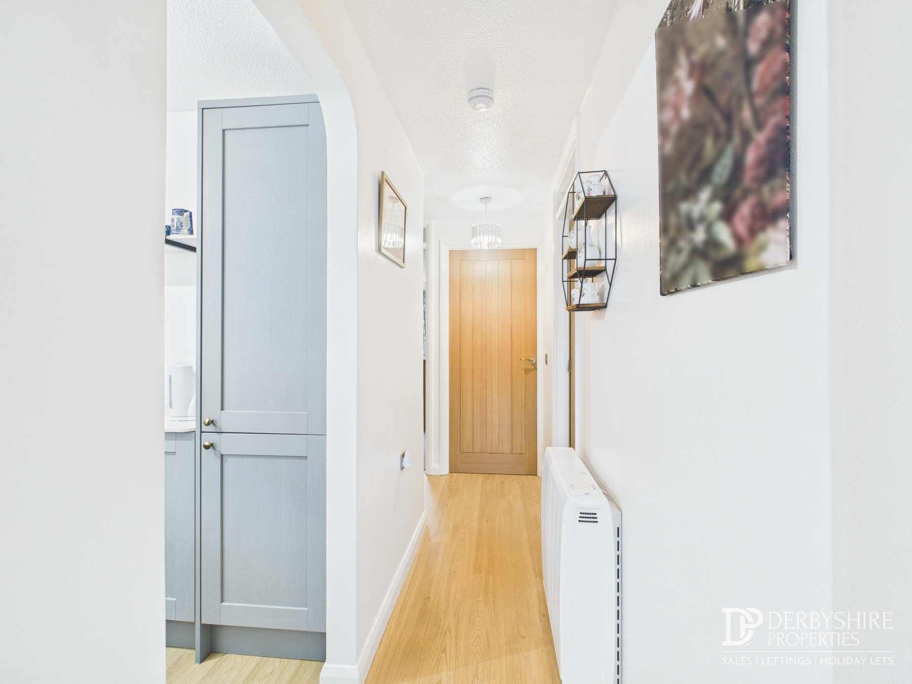 Accessed via a composite entrance door to the front elevation, the light and airy reception hall features attractive wood flooring and a wall-mounted radiator, setting the tone for the high standard of finish found throughout the apartment.