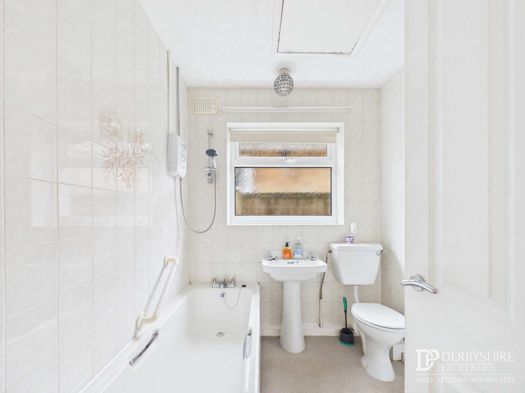 2.06m x 1.92m (6' 9" x 6' 4") A tiled three piece suite including; Bath with electric shower, pedestal handwash basin and low level WC.