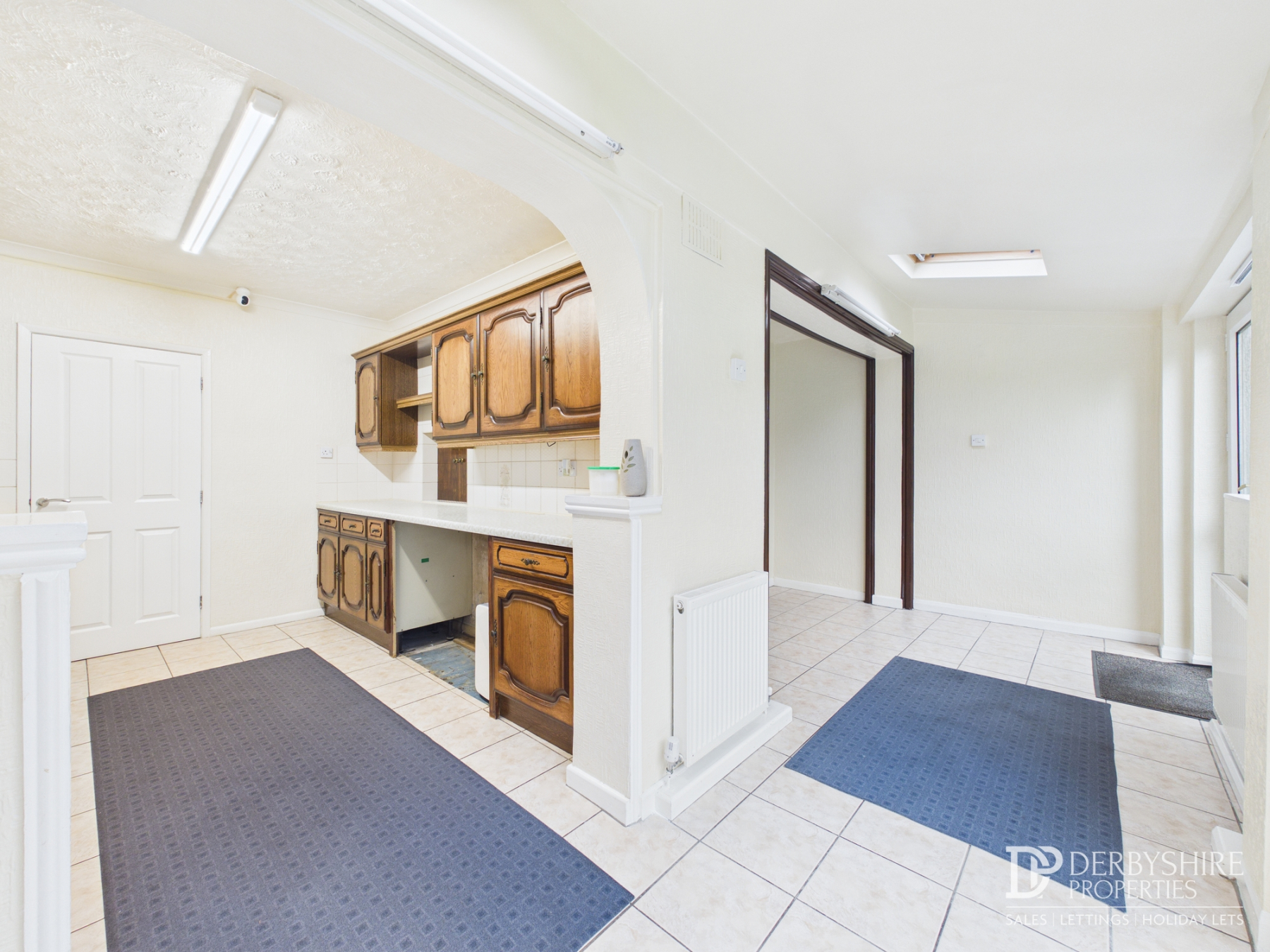 Enjoying an open aspect to the kitchen, this space is ideal for dining or relaxing. Tiled flooring runs throughout whilst two double glazed windows, two Velux windows, double glazed sliding doors and further UPVC double glazed door provide a wealth of natural light. fitted cupboard provides valuable storage whilst mini wall mounted radiator also features.
