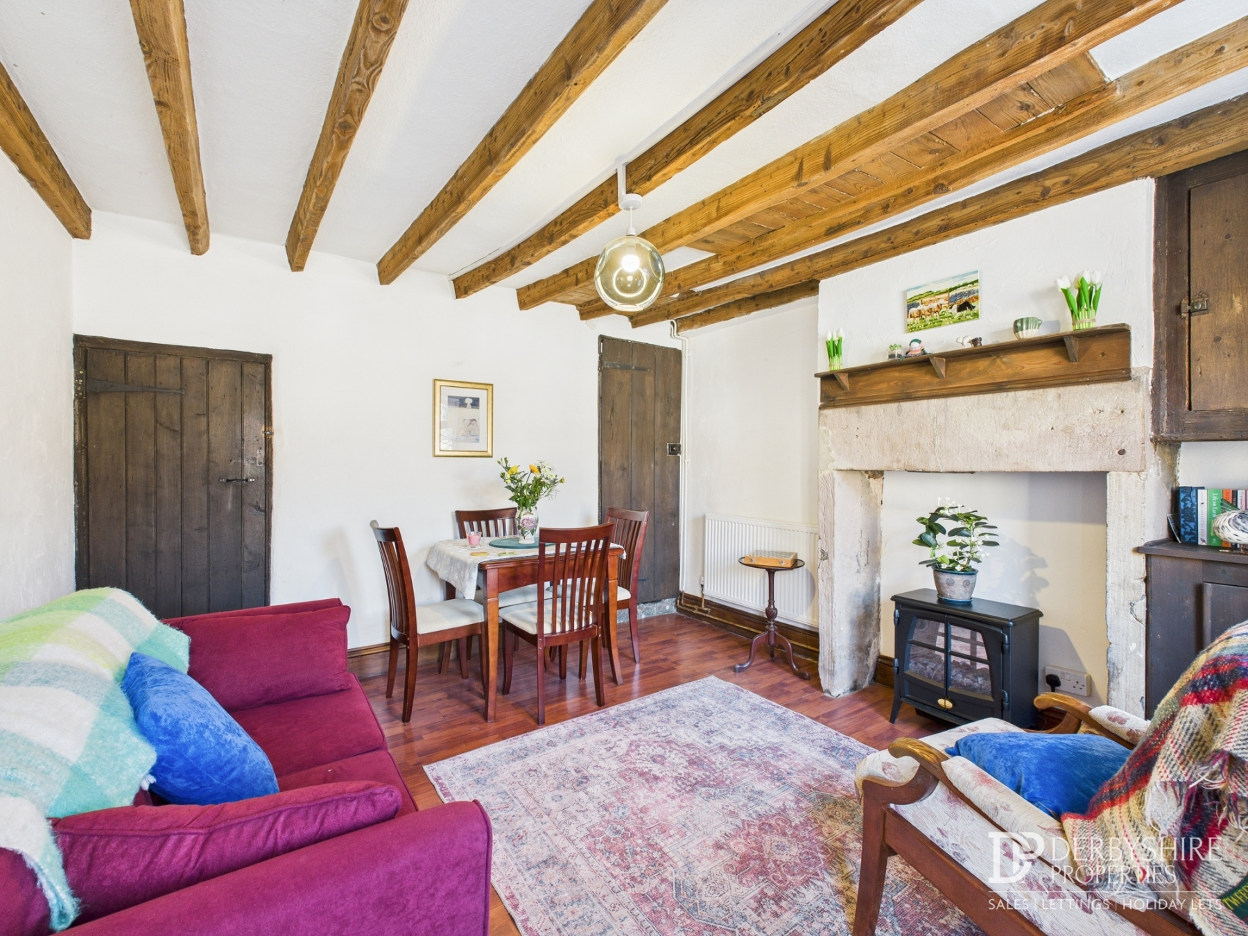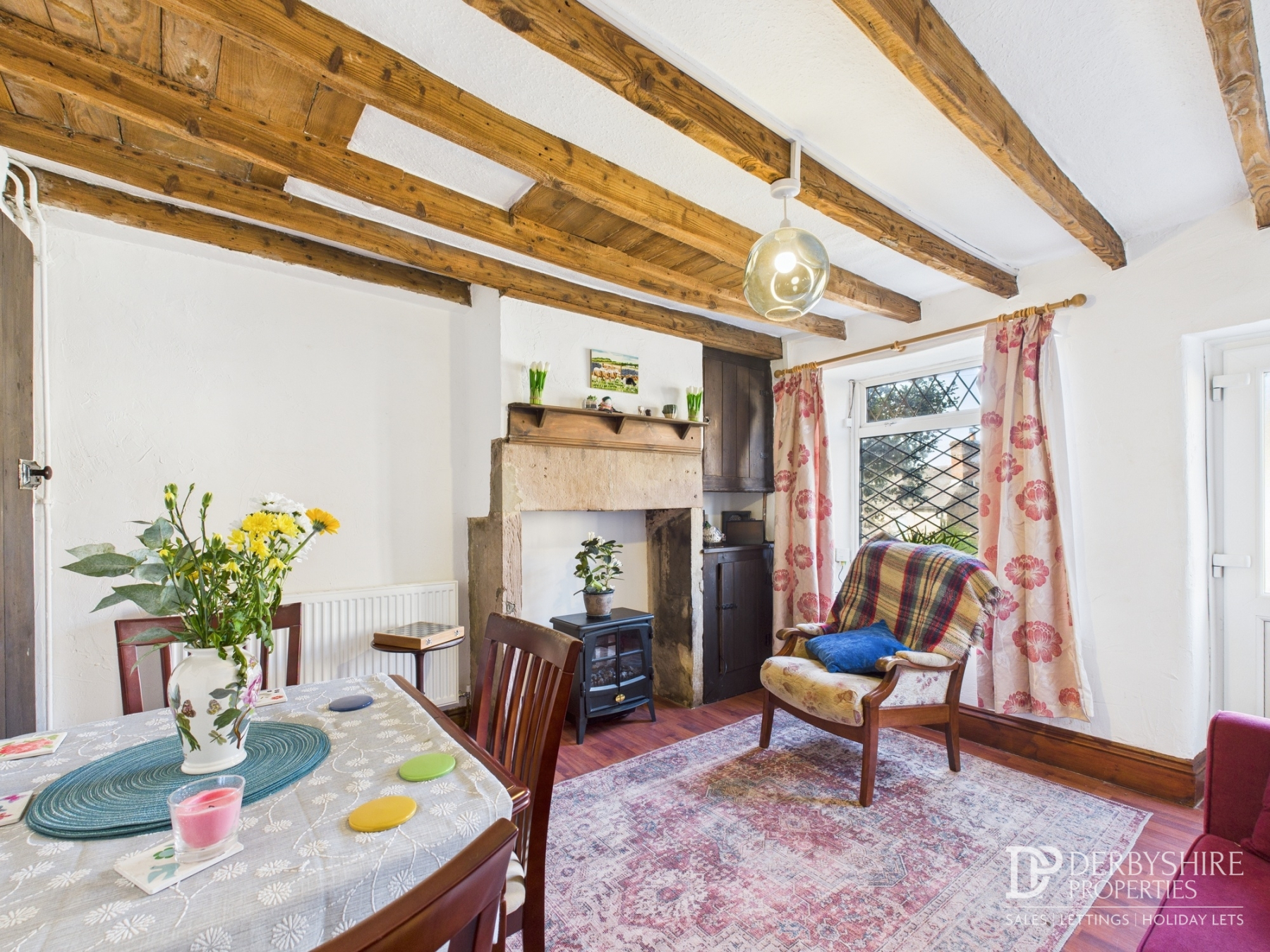 Accessed via UPVC door from the front elevation, double glazed window, exposed beams to ceiling, wall mounted radiator and under stairs storage cupboard. The feature focal point of the room is an original exposed stone fireplace with bespoke fitted storage cupboards located within the chimney recess. Internal door leads to:-