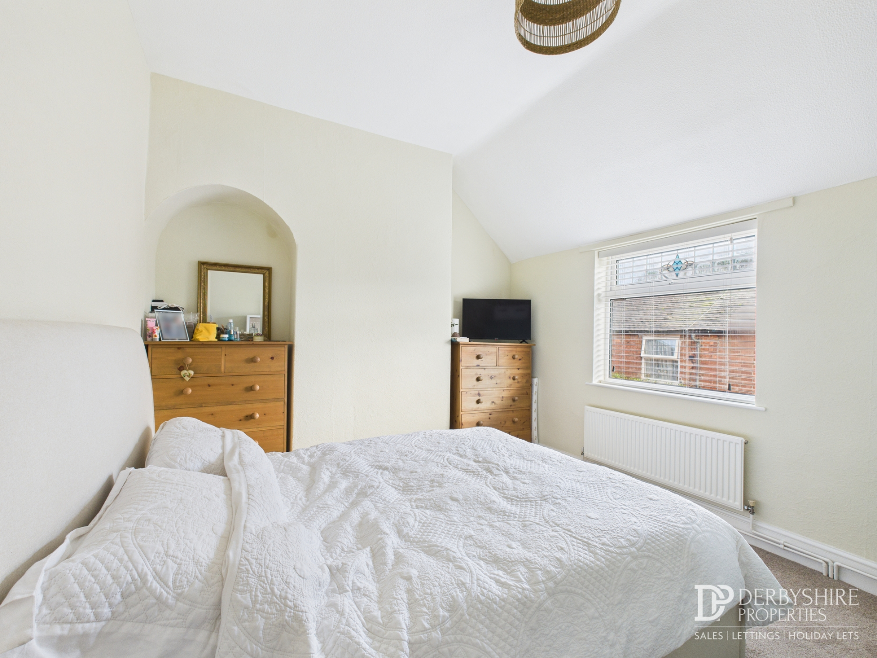 Bedroom One – With a double-glazed window to the front elevation, two feature storage recesses, wall-mounted radiator, and ample space for wardrobes.