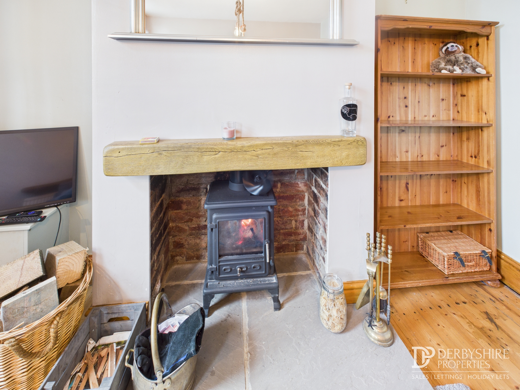Accessed via the original hardwood door from the porch is this beautifully presented reception room featuring a cast-iron log-burning stove, stripped wooden floorboards, double-glazed window to the front elevation, TV point and wall-mounted radiator.