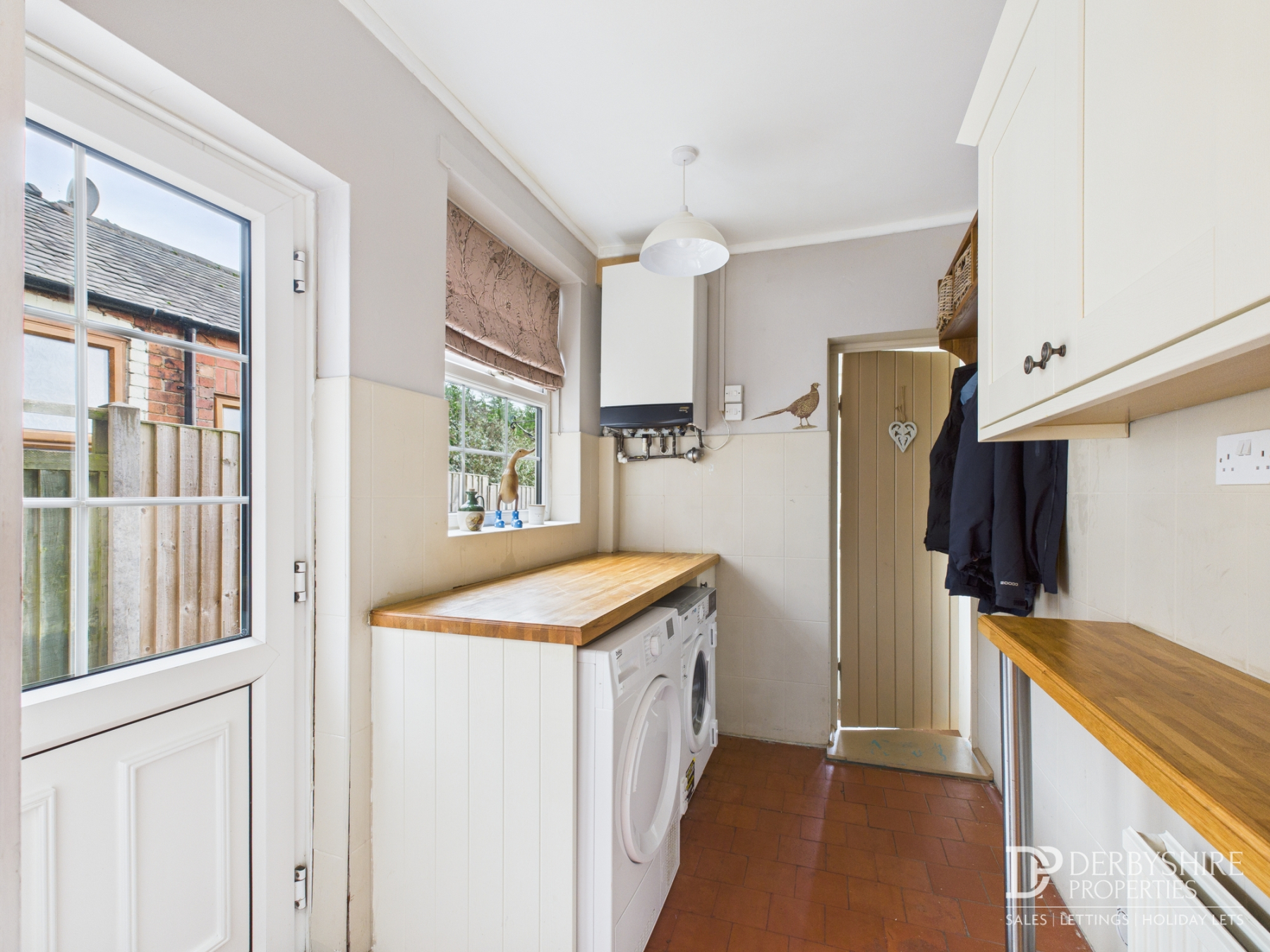 Derbyshire Properties are delighted to introduce for sale this charming and beautifully maintained cottage, offered with no upward chain and located in the highly regarded village of Denby. The accommodation briefly comprises: entrance porch, living room with log-burning stove, inner hallway with staircase to the first floor, kitchen/dining room, utility room and guest cloakroom/WC. To the first floor, a landing provides access to two double bedrooms and a well-appointed bathroom, accessed via the master bedroom. Externally, the property enjoys a small front garden and a fully enclosed, professionally landscaped rear garden with delightful elevated views and a brick outbuilding. We believe the property will ideally suit first-time buyers or those looking to downsize. An immediate internal inspection is strongly recommended to avoid disappointment.