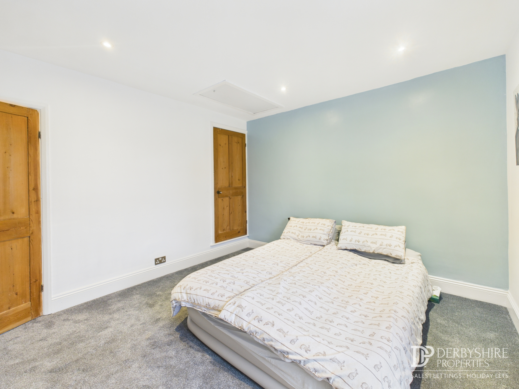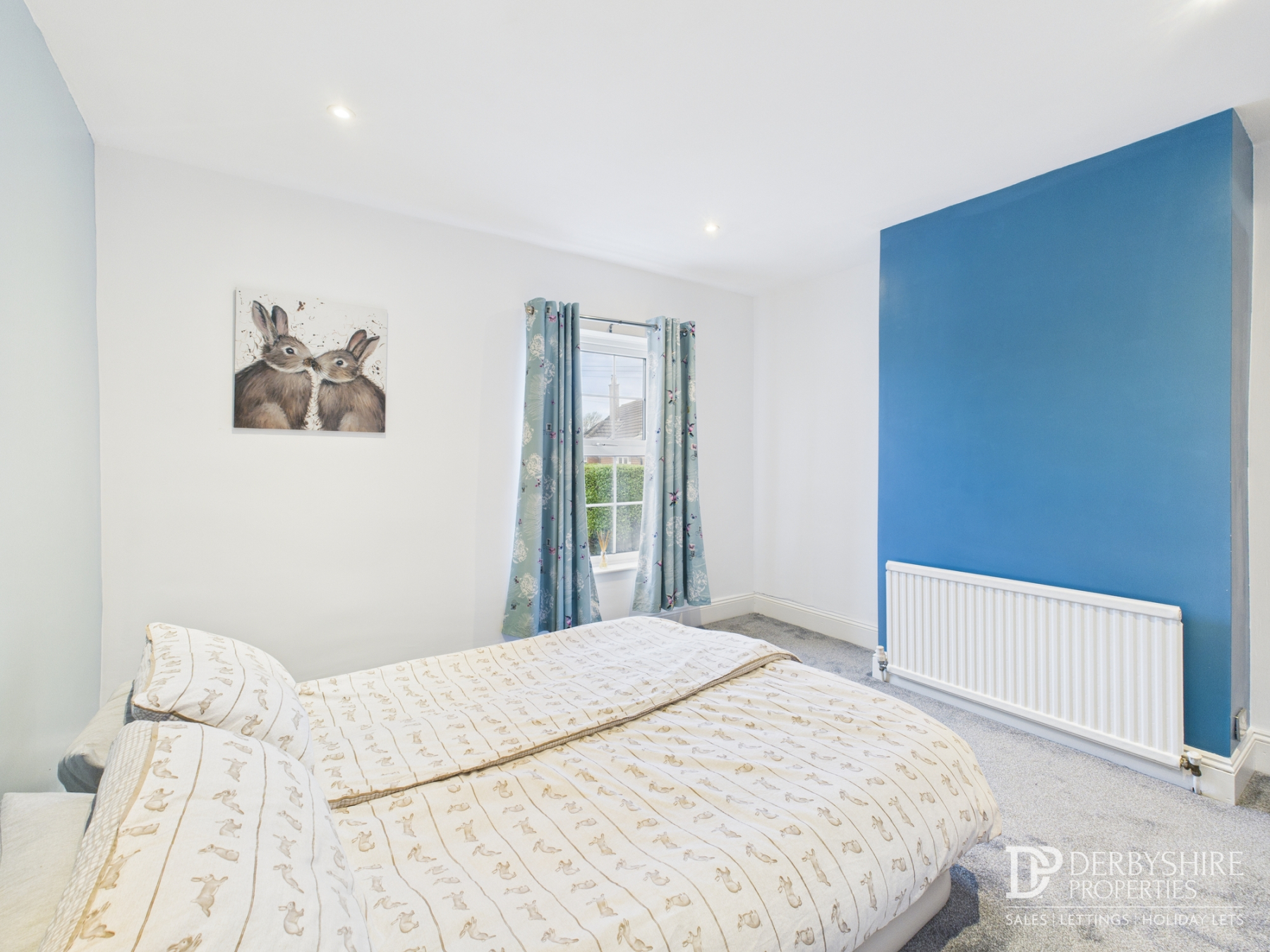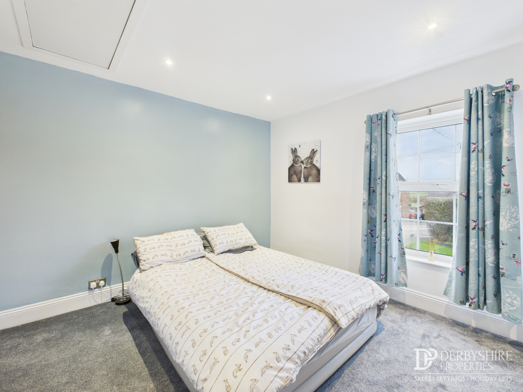 A further double bedroom with double-glazed window to the front elevation, over-stairs storage cupboard, wall-mounted radiator and loft access with pull-down ladder and spotlighting.