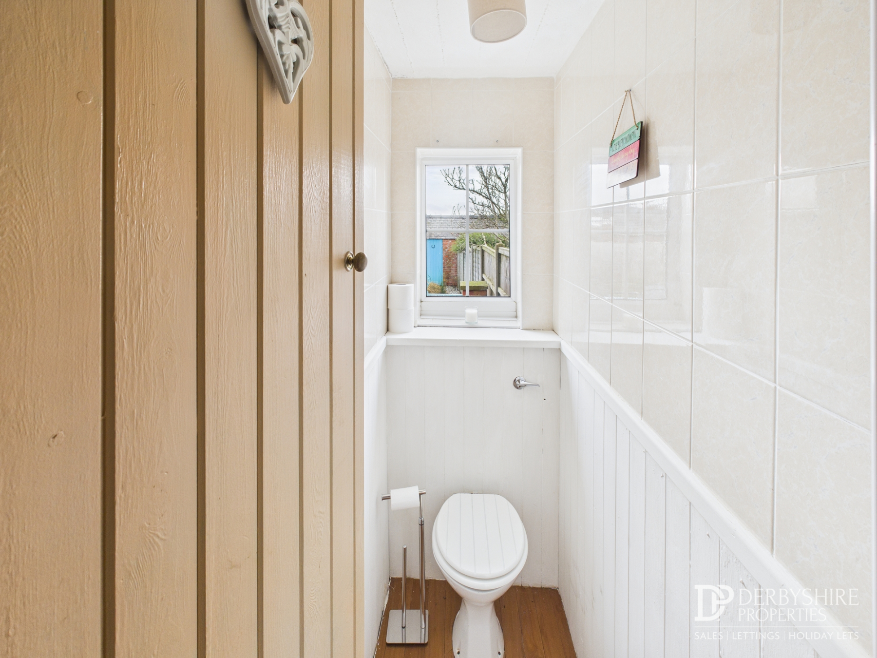 Fitted with a low-level WC, half-height wall panelling, tiling and a double-glazed window to the rear elevation.