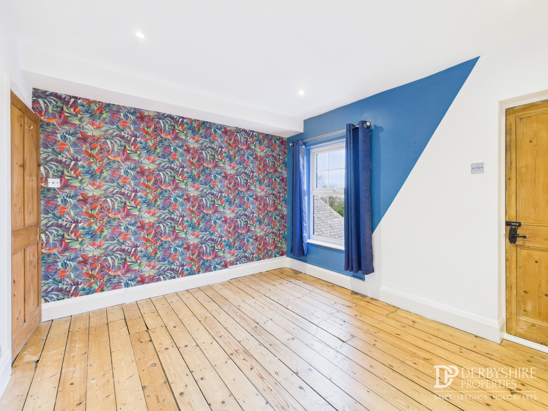 A spacious double room with double-glazed window to the rear elevation enjoying elevated views across surrounding farmland. Features include stripped wooden floorboards, wall-mounted radiator and internal door to: