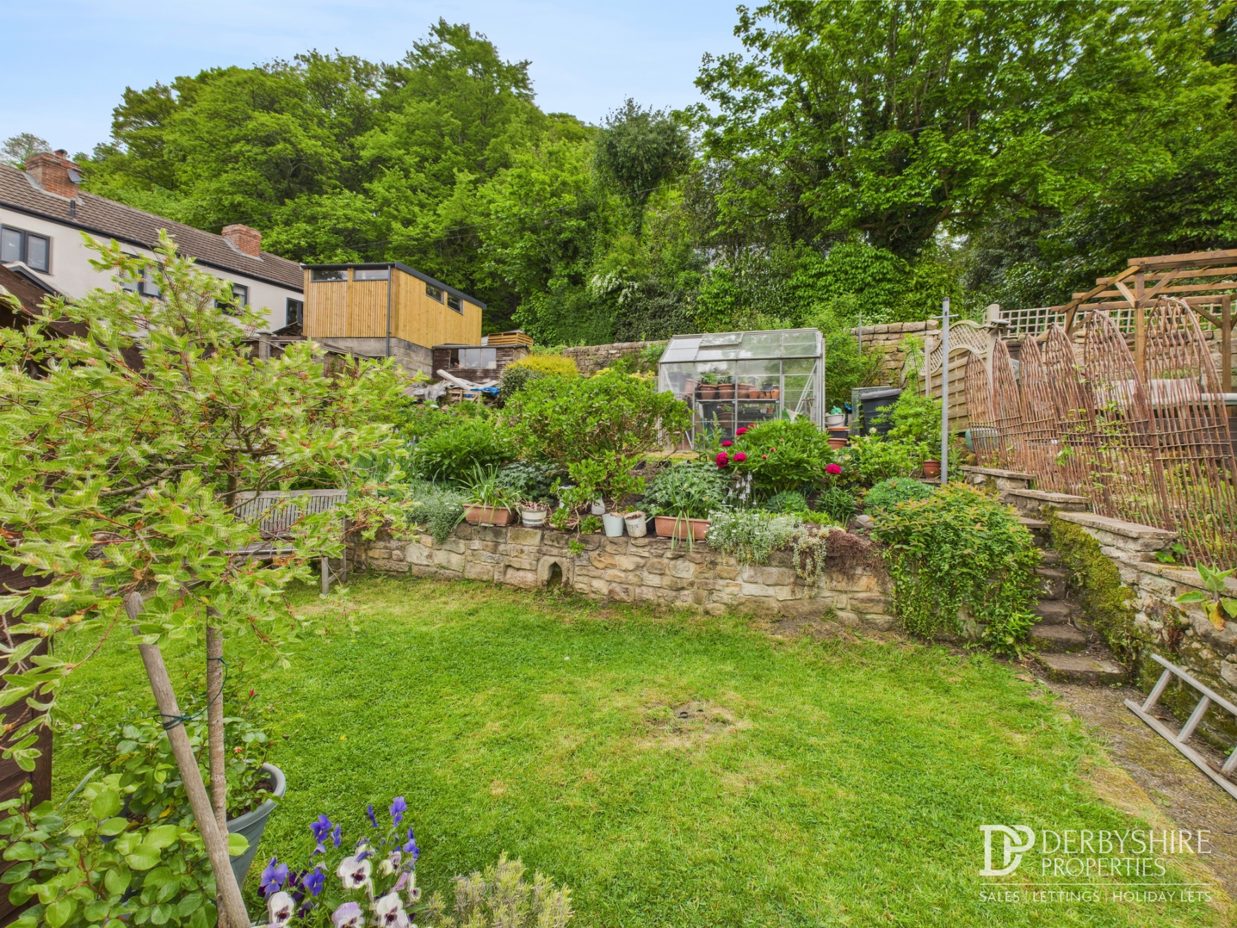 Steps then provide access to an area of garden housing a glass greenhouse again with stocked flowerbeds and borders. Directly to the bottom of the garden is a attractive Stone wall providing privacy from neighbouring properties at the rear.