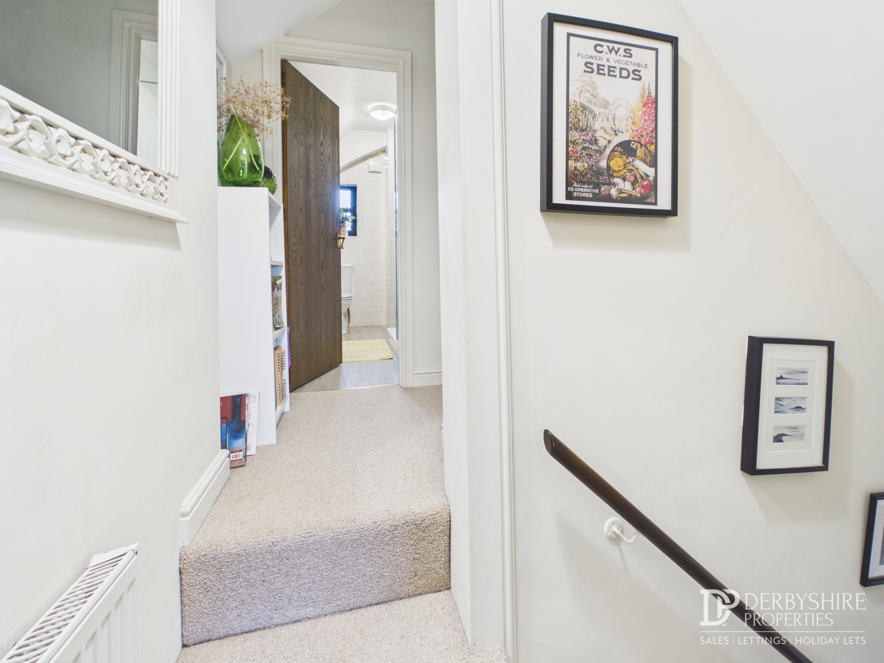 Located to the front elevation and benefiting from a superb sash window providing stunning elevated views across Belper and The Chevin. Wall-mounted radiator, space for bedroom furniture and over-stairs storage cupboard.