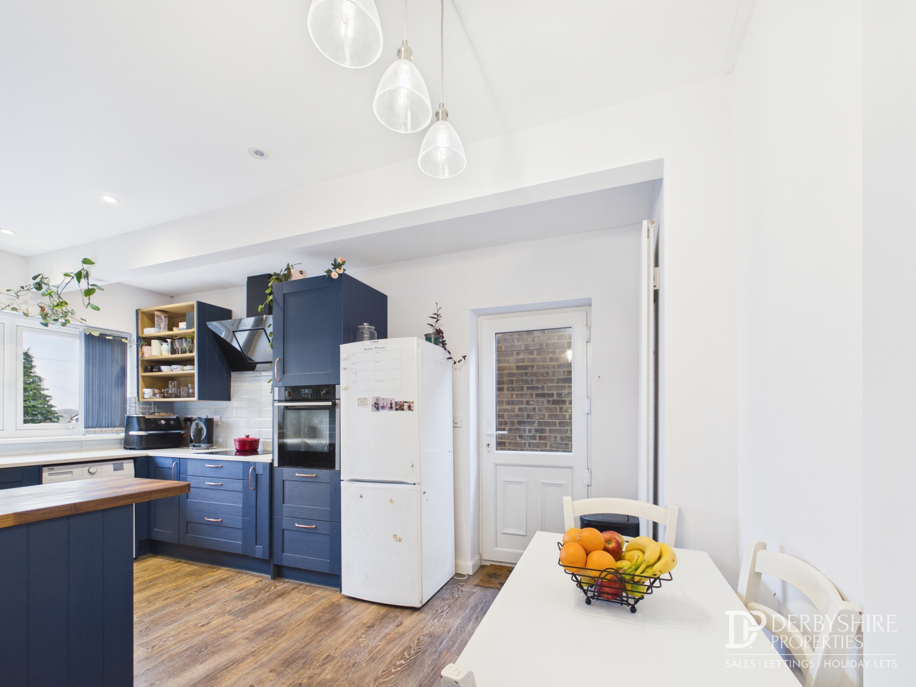 Derbyshire Properties are pleased to offer for sale this well-appointed accommodation comprising of a welcoming entrance hallway, a spacious lounge featuring a multi-fuel stove set within a recessed fireplace, and an impressive dining kitchen fitted with stylish navy shaker-style units and a breakfast bar. There are three well-proportioned bedrooms and a modern family bathroom.