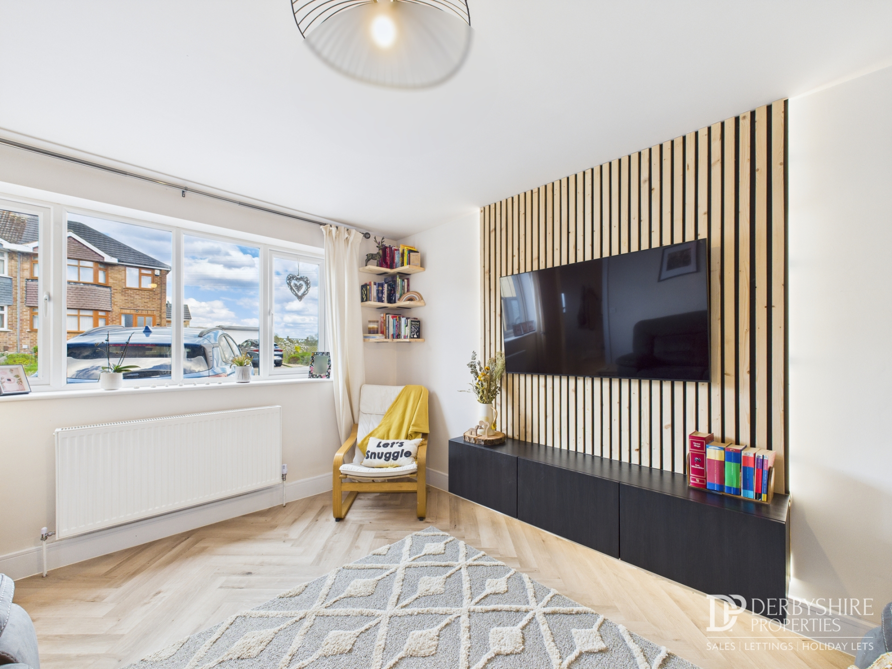 3.35m x 4.17m (11' 0" x 13' 8") Located to the front aspect is this well proportion lounge with double glazed window to the front elevation, wall mounted radiator, shelving, and LTV floor covering. The focal point of the room is a floor to ceiling feature wall with illuminated backdrop and TV point.