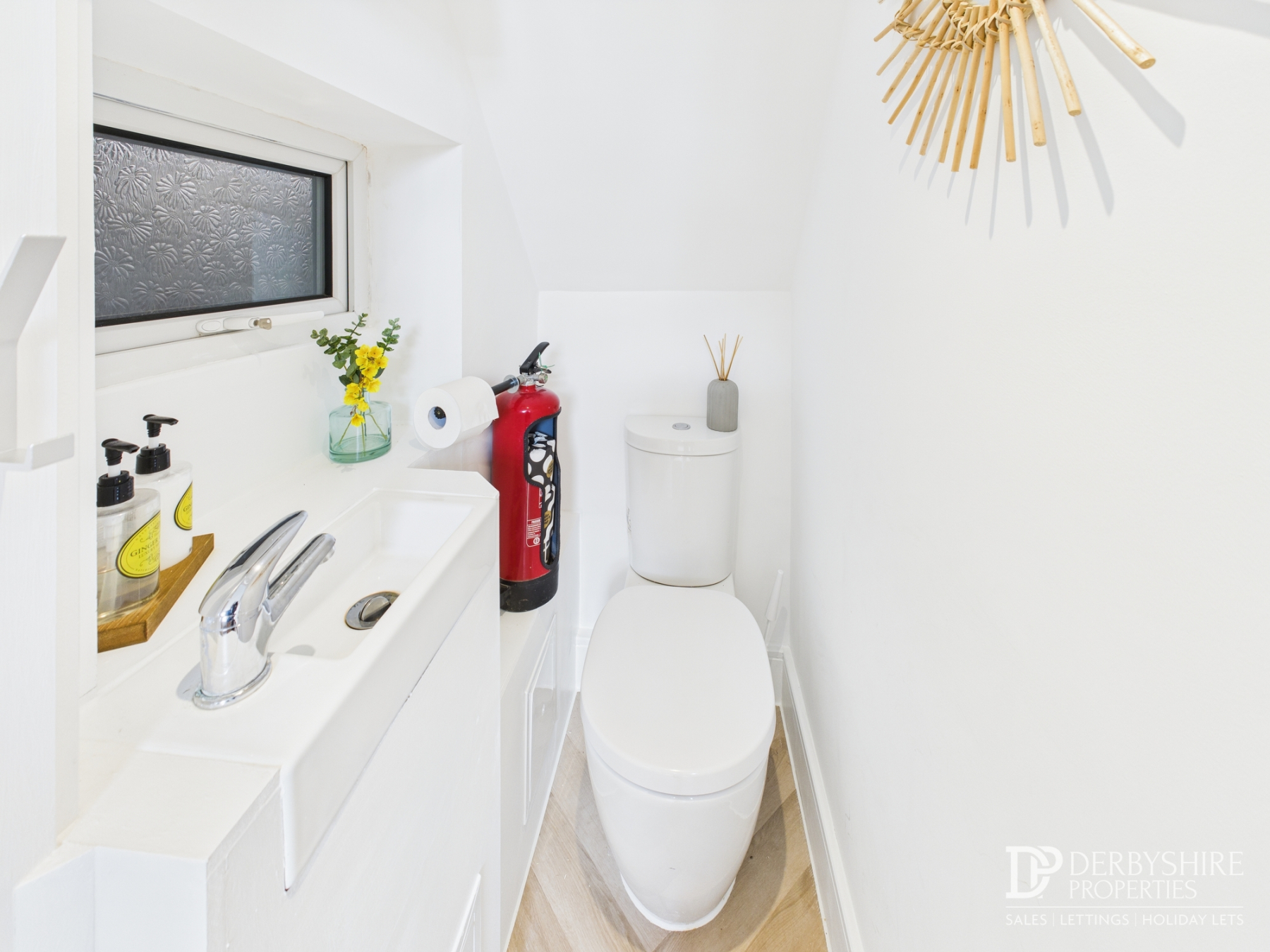 Located underneath the stairs and access by the kitchen comprising of a low-level WC, slimline vanity unit, double glazed obscured window and LTV floor covering.
