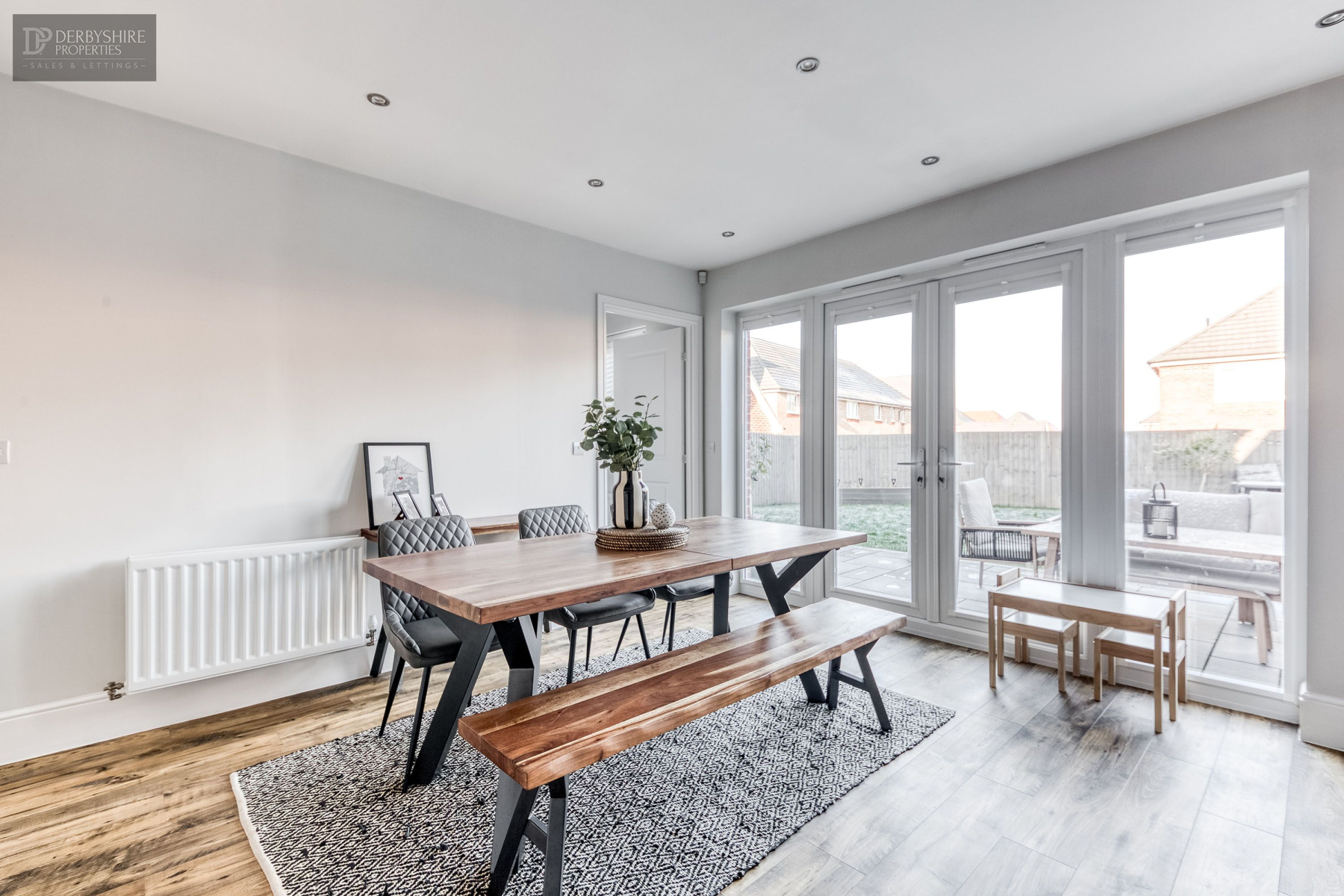 Derbyshire Properties are delighted to offer for sale this beautifully presented modern four bedroom detached family home located on popular residential estate. The property is tastefully decorated throughout and briefly comprises; a spacious reception hall, living room, plan living kitchen, utility room and cloakroom/WC. To the first floor, a landing provides access to 4 bedrooms, family bathroom, and ensuite to master bedroom . Externally the property offers a front garden which is mainly laid to lawn, double width driveway with integral garage. The rear garden is mainly laid to lawn with patio.