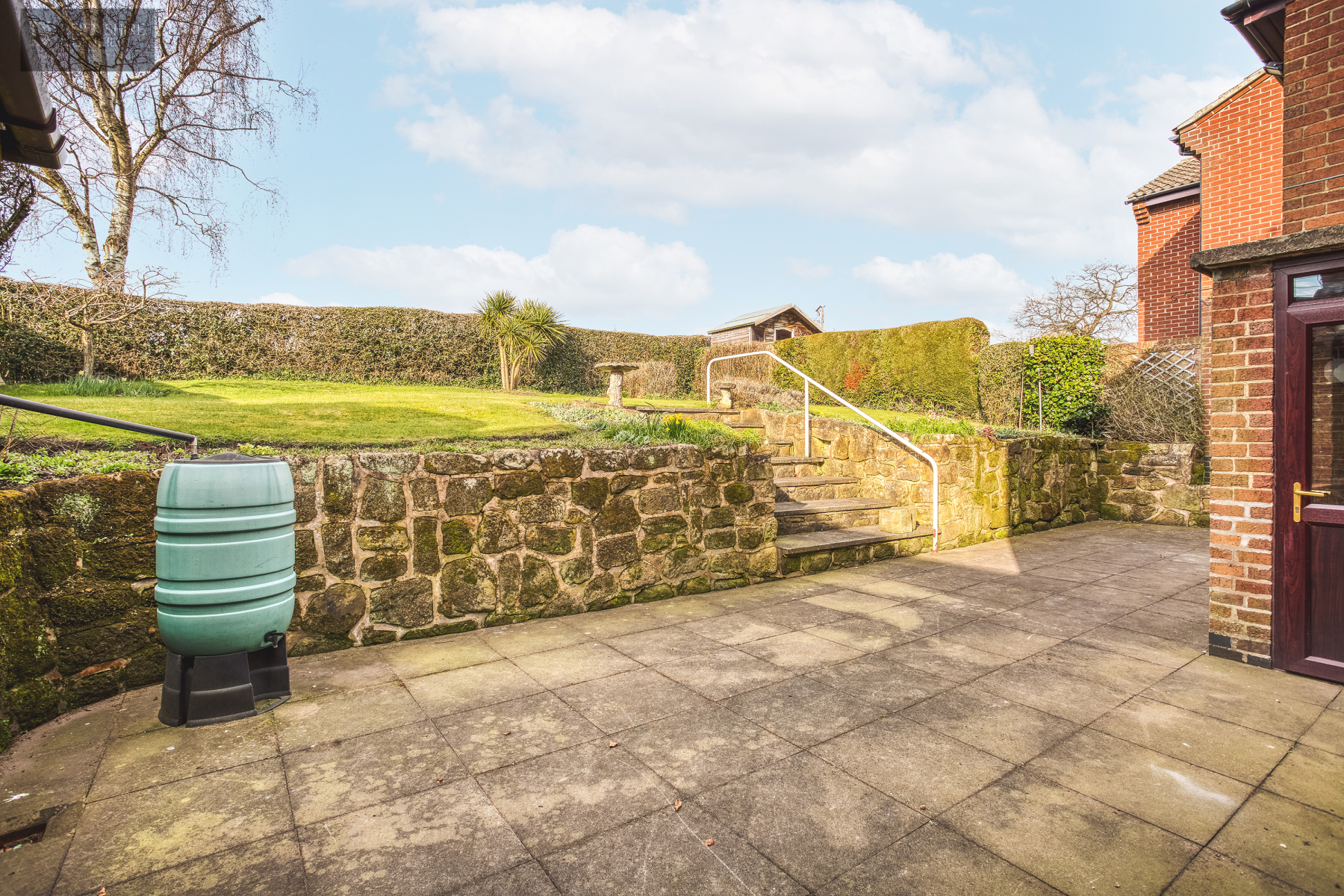 The large frontage offers and area of lawn surrounded by conifer and hedgerow screening with stocked flowerbeds and borders. A large gravelled parking area provides parking for numerous vehicles and also leads to a detached brick built garage with up and over door light and power. To the rear of the garage, there is an attached workshop that provides additional storage also with light and power. The rear garden offers a full width paved patio entertaining terrace with raised lawn garden with attractive stone wall frontage. The garden is enclosed by hedge-row boundaries, it has stocked flower beds and borders and backs on to open fields.