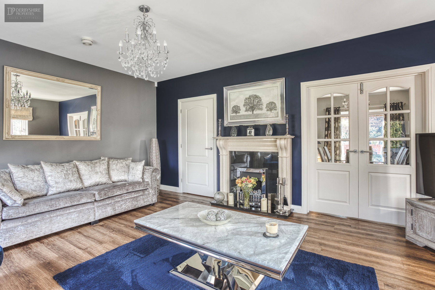 5.68m x 4.12m (18' 8" x 13' 6") With the continuation of the Karndean floor covering from the entrance hall, wall mounted radiators and windows to the front and side elevations. TV point, internal French doors lead to the dining room, the focal point of the room is a wall mounted fire with attractive surround, marble backdrop in half. The main feature to the room is in truly stunning corner Bay window offering views of the front and side gardens.