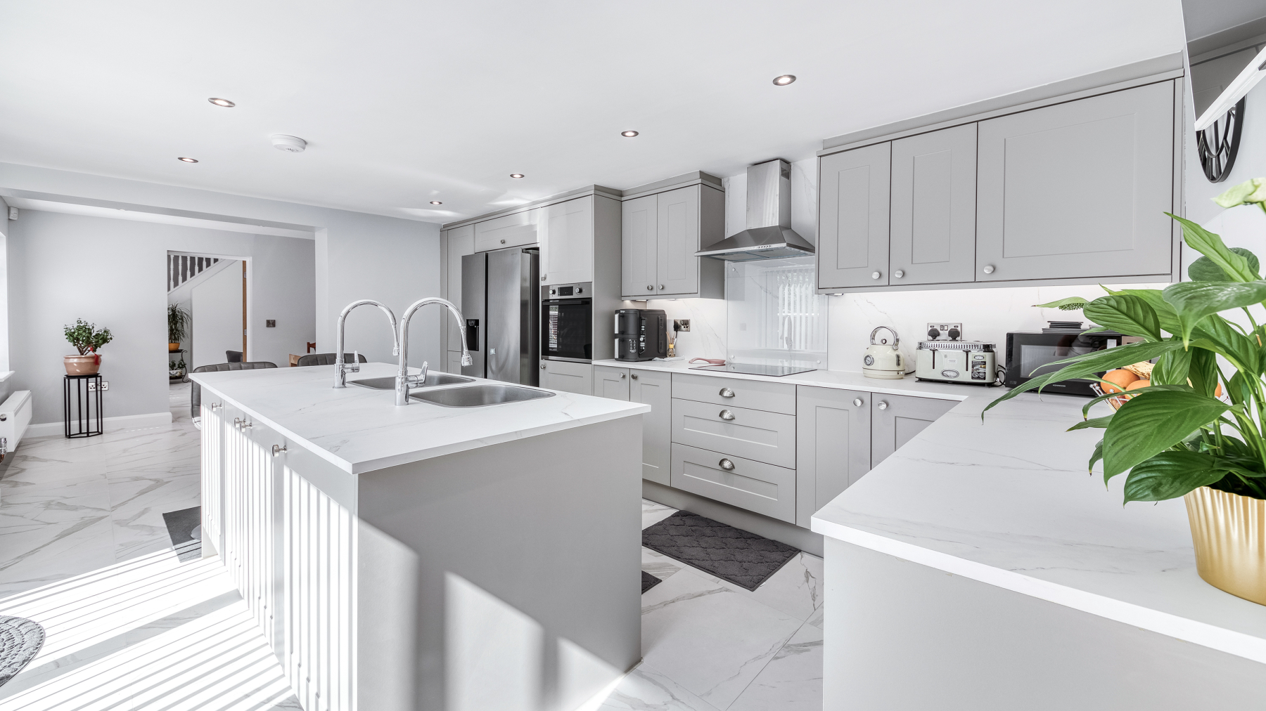 The property is situated on a large corner plot with parking space for over 20 vehicles. The gardens are low-maintenance, primarily paved, and feature stocked raised flowerbeds and borders. The self-contained annex also boasts its own private garden, providing a high degree of privacy. A standout feature of the garden is a modern detached outbuilding, currently used as a bar, which we believe could be repurposed for various uses, such as a home office, gym, or even an Airbnb rental.