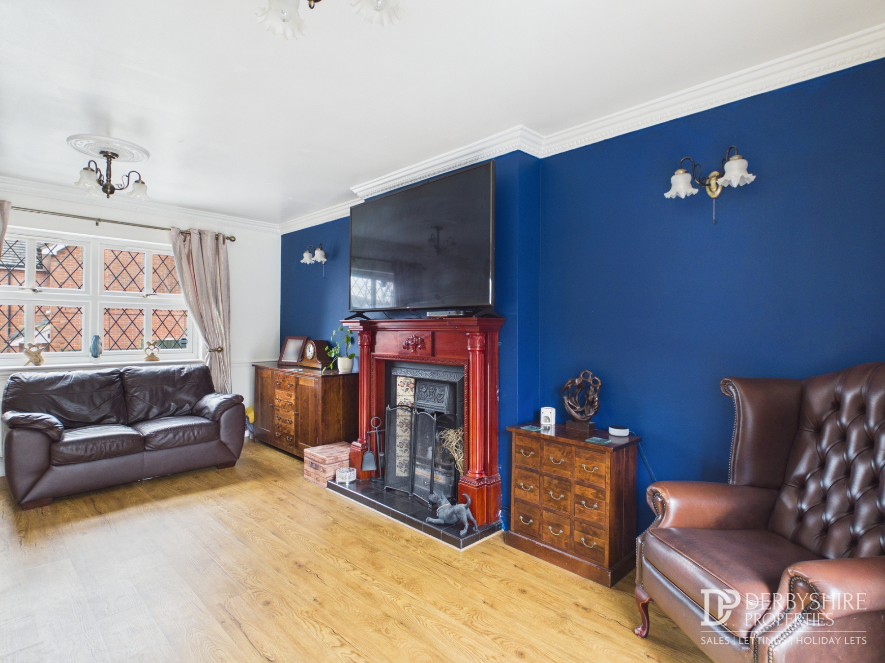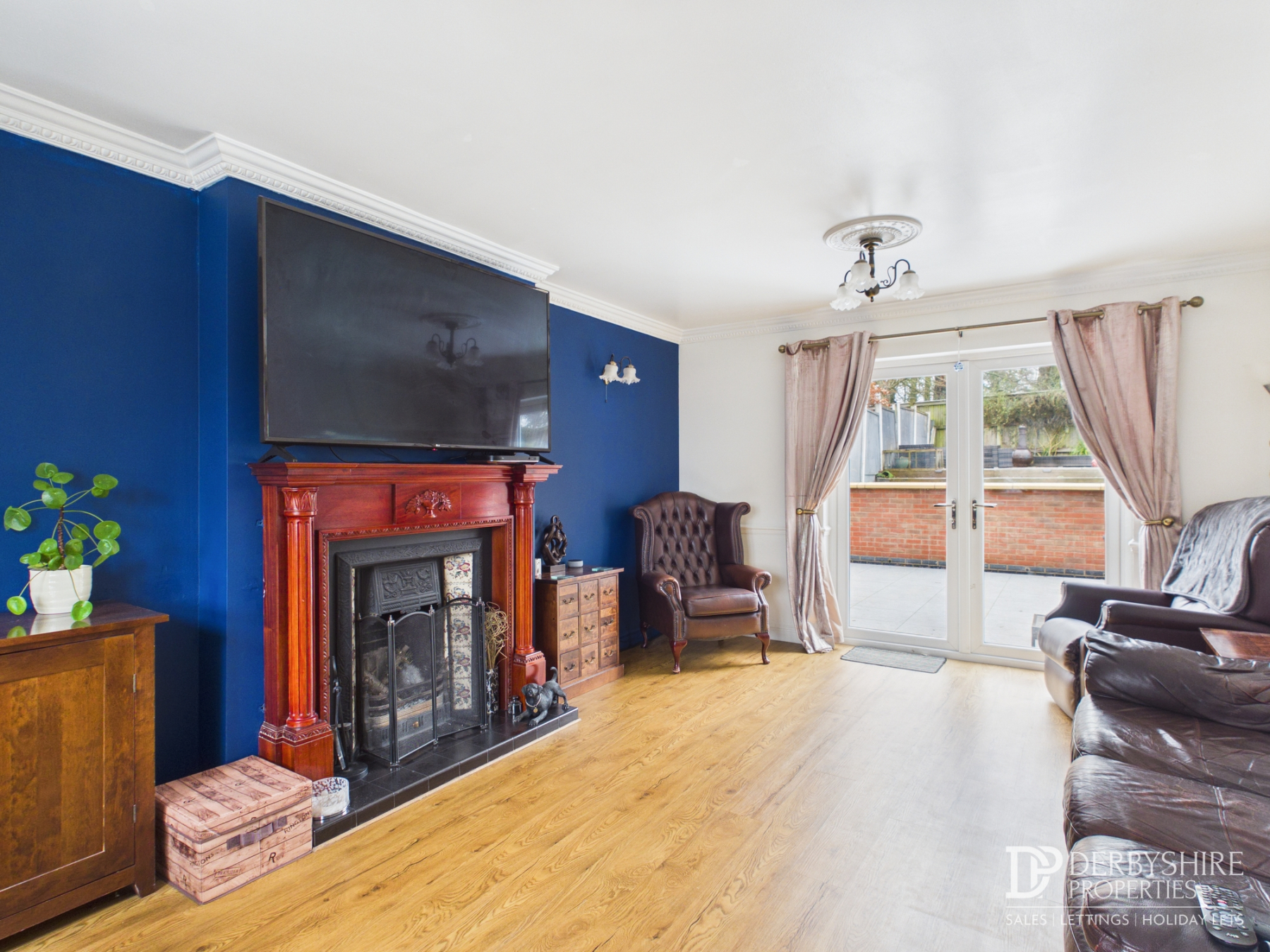 3.62m x 5.46m (11' 11" x 17' 11") With double glazed window to the front elevation, double glazed 'French' doors to the rear elevation, wall mounted radiators, decorative coving, dado rail, wall lighting, TV and telephone points. The feature focal point of the room is an open 'cast-iron' fire with tiled backdrop, decorative wooden surround and raised tiled hearth.