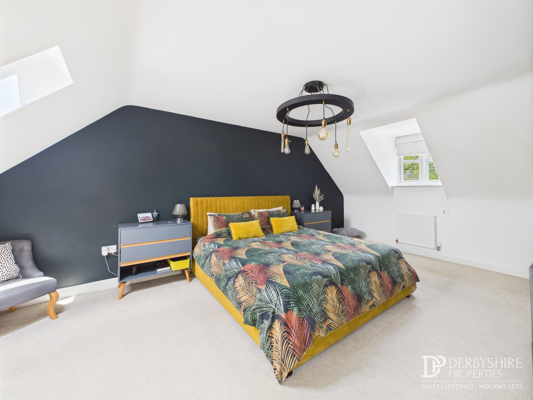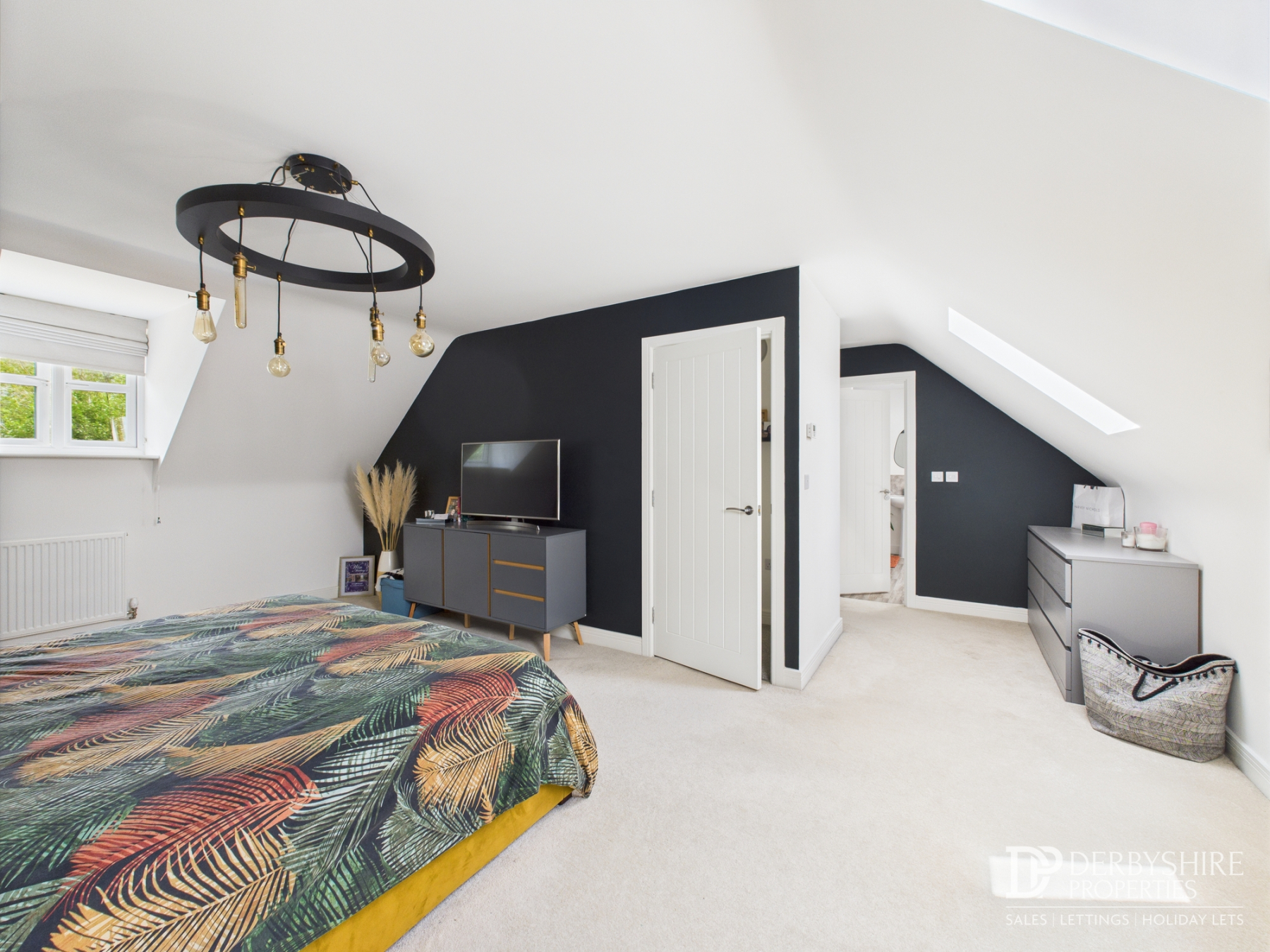 5.90m x 5.75m (19' 4" x 18' 10") This magnificent master suite spans the entire width of the property, creating a spacious and tranquil haven. It features a double-glazed dormer window to the front elevation and Velux windows to the rear, flooding the room with natural light. The suite includes a wall-mounted radiator, TV point, and an adjoining dressing room, providing ample storage and convenience.