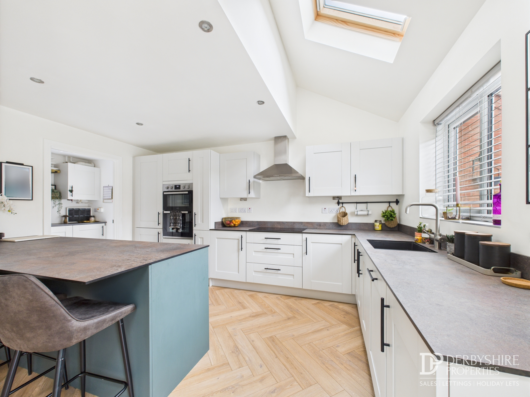 Additional features include a wall-mounted radiator, ceiling spotlights, double-glazed French doors and a window to the rear elevation, along with skylights that flood the space with natural light. An internal door leads conveniently through to: