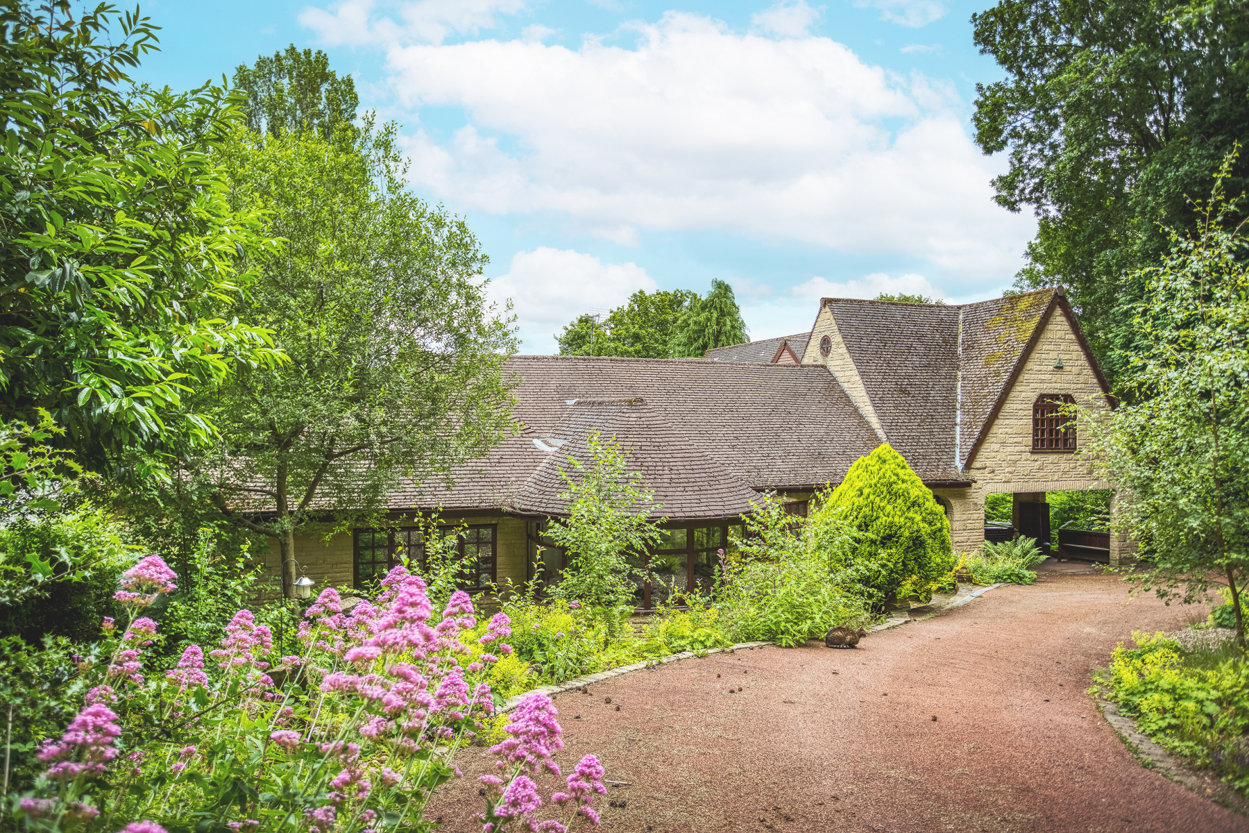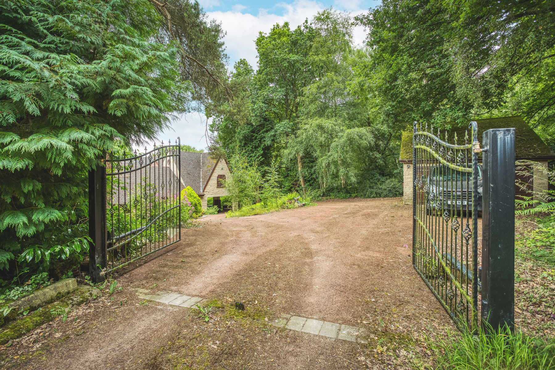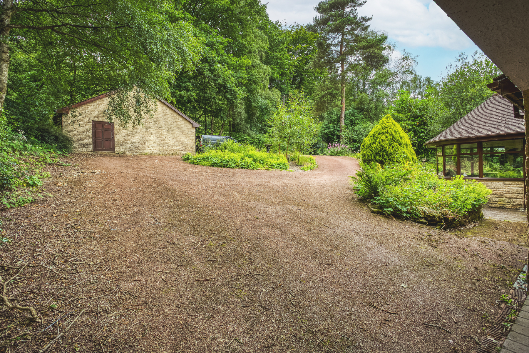 The driveway to the home is approached from a quiet lane and is exceptionally private and hidden from view. The home is secured by an electric gated access and once inside the grounds there is a feeling of total seclusion and privacy. The driveway itself is low maintenance, creates generous parking for multiple vehicles and provides access to the detached double garage with workshop / store room to the rear and further storage above. In addition, there is a car port to the front of the property providing additional parking if necessary.