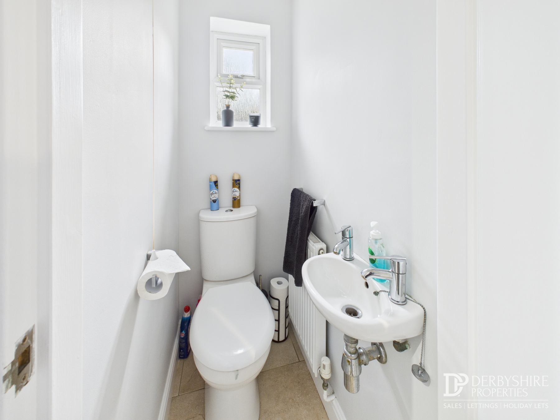 Comprising a low-level WC, wall mounted wash hand basin, tiled floor covering, wall mounted radiator, and a double glazed obscured window to the rear elevation.