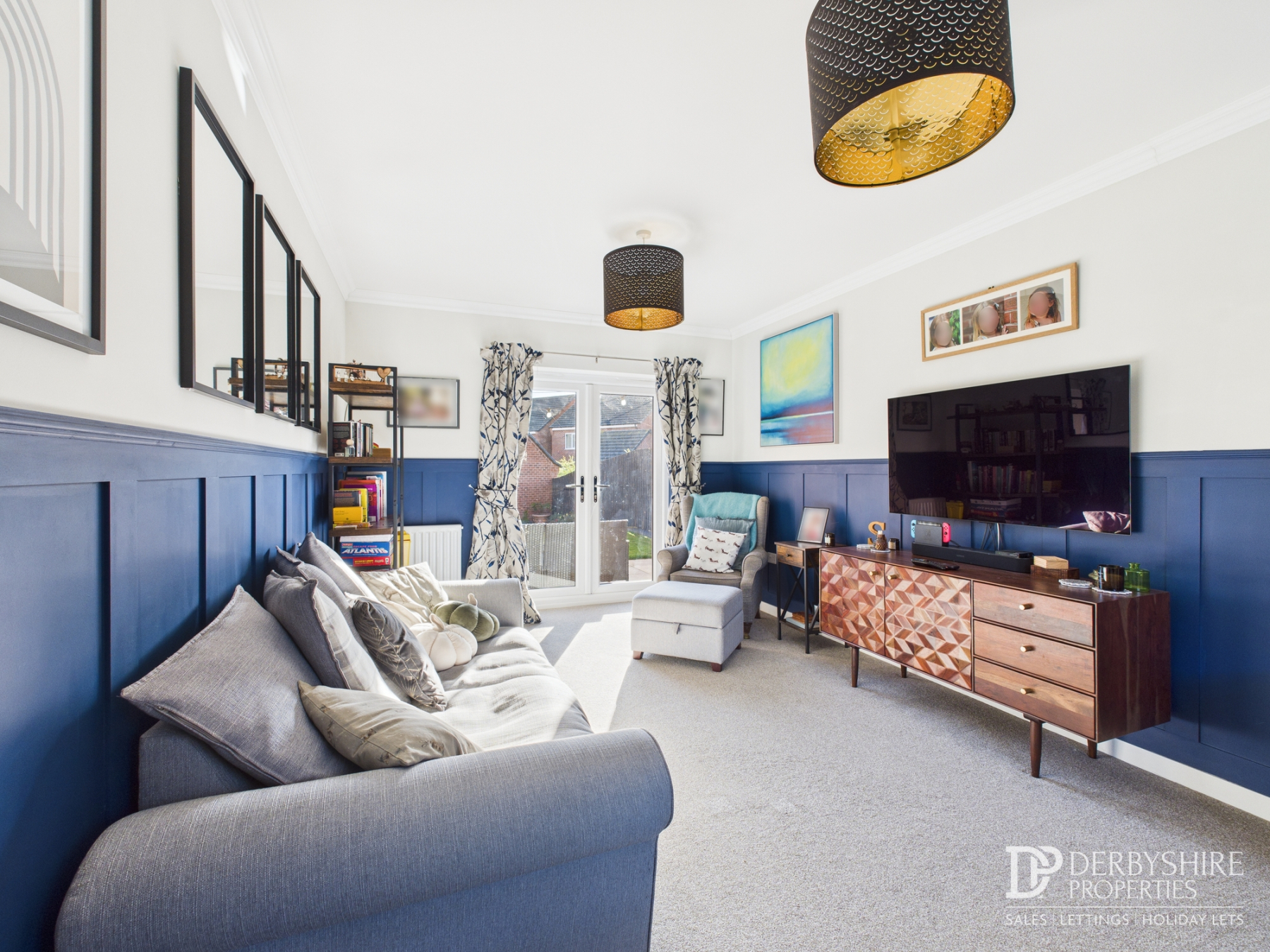 With double glazed window to the front elevation and French doors opening to the rear garden. Finished with attractive wall panelling, decorative ceiling coving, wall mounted radiator and TV point.