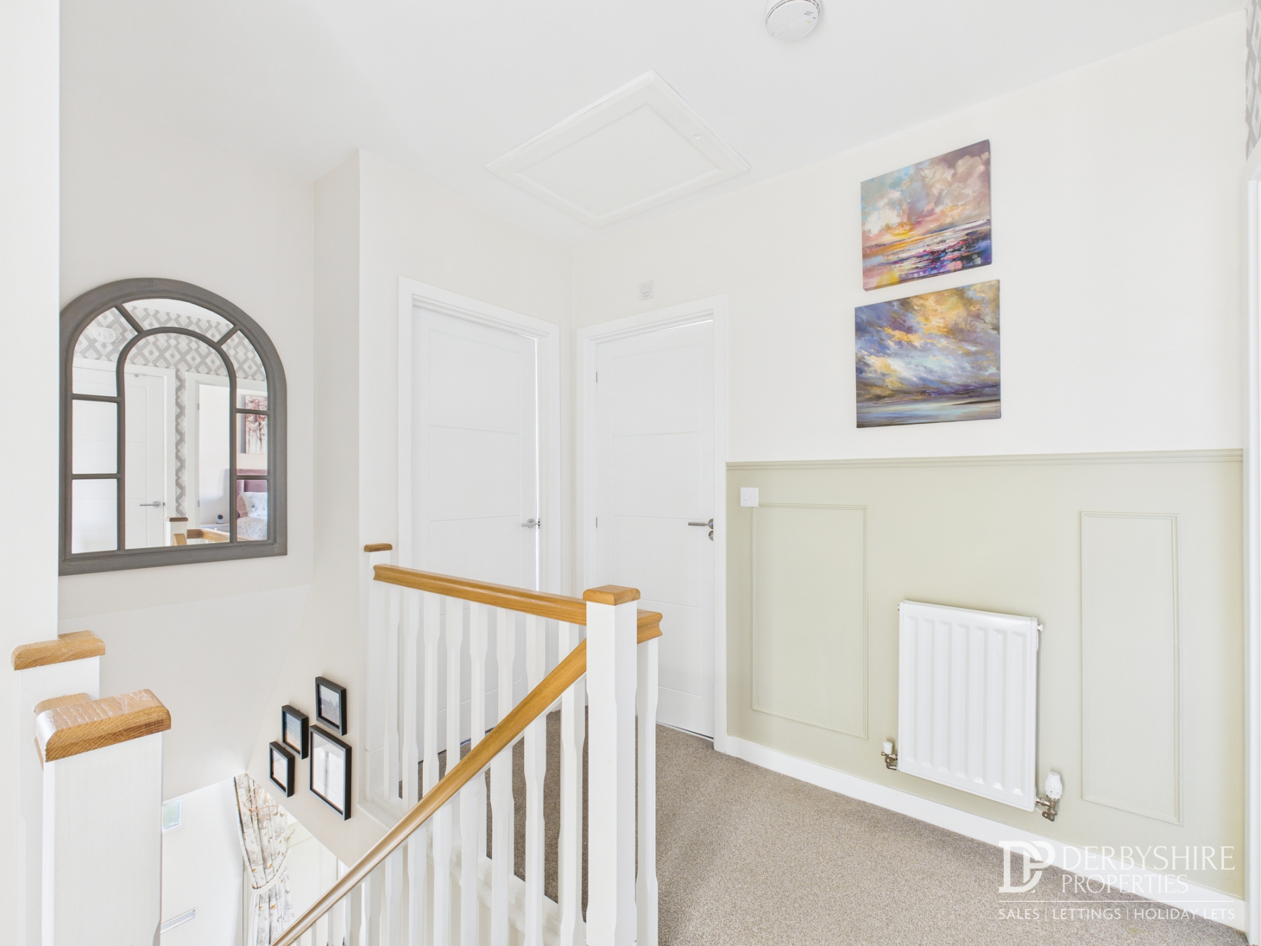 Accessed via the main entrance hallway, this landing features attractive wood panelling to the walls, a wall-mounted radiator, and a ceiling-mounted loft access point. Internal doors provide access to all upstairs bedrooms and the family bathroom.