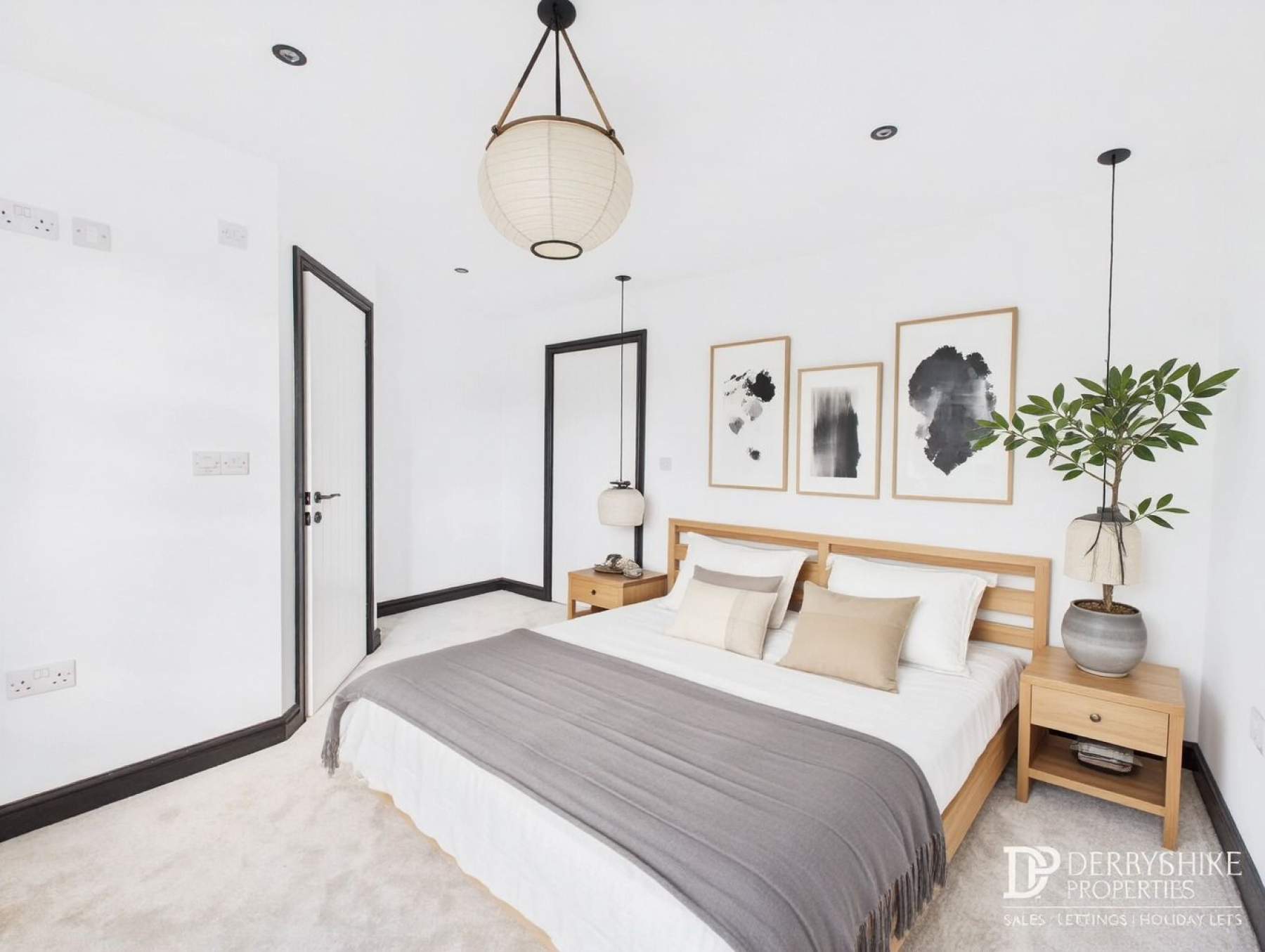 A superb open-plan space with the continuation of the wood floor covering from the hallway. There is a double-glazed window to the side elevation, TV point, underfloor heating, and a useful storage cupboard. The room’s focal point is the set of stunning bi-fold doors to the rear elevation, which open out onto the garden terrace, creating an ideal space for relaxing or entertaining.