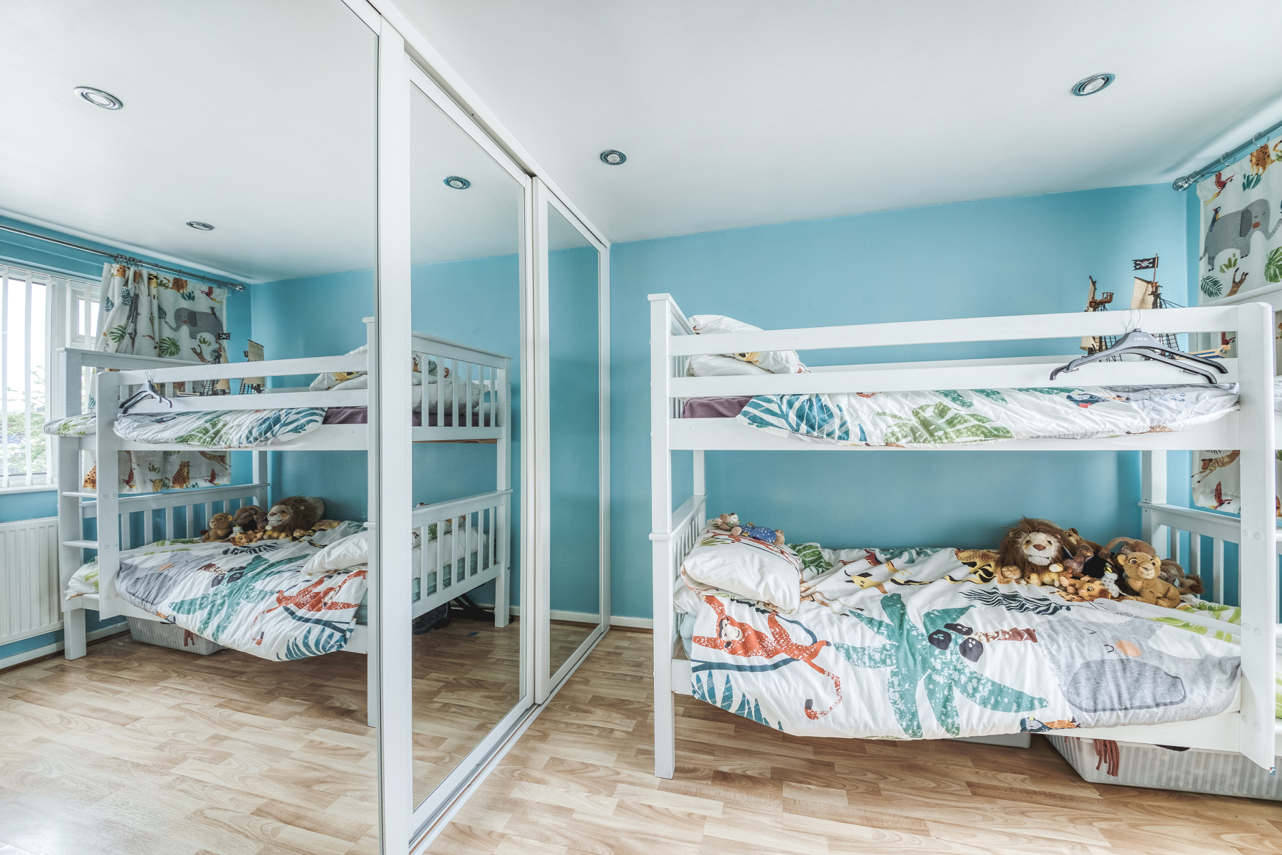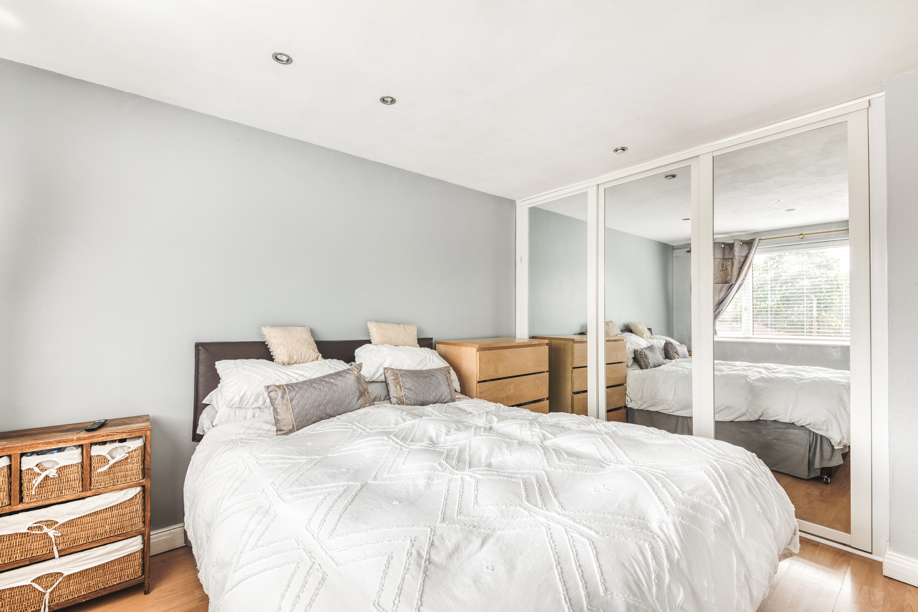 With double glazed window to the rear elevation, wall mounted radiator, wood floor covering, spotlighting and fitted wardrobes with mirrored frontage.