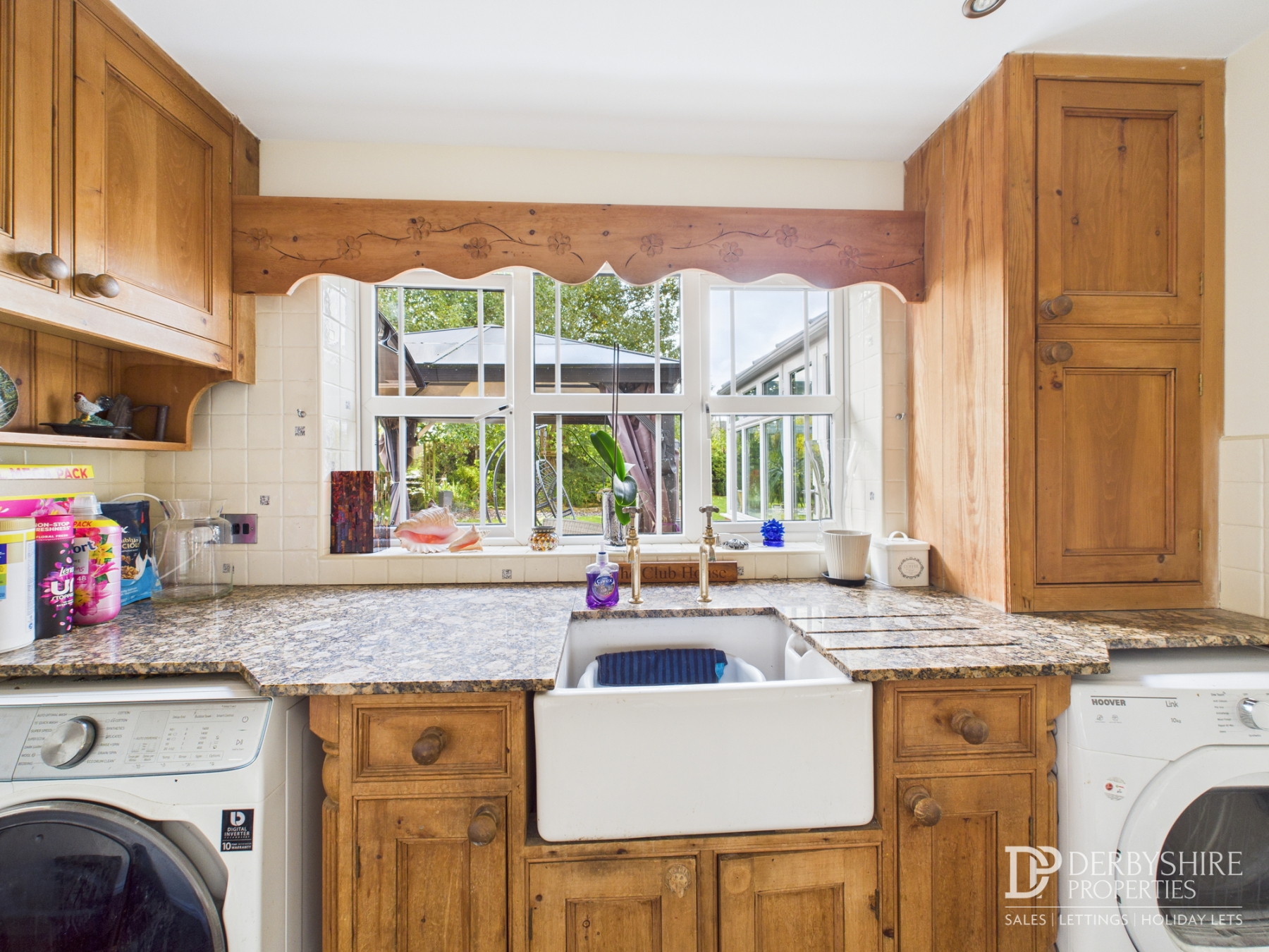 2.85m x 2.78m (9' 4" x 9' 1") With storage cupboards and granite worktops of its own, this utility area benefits from under counter plumbing/power for washing machine/tumble dryer and inset Belfast sink.
