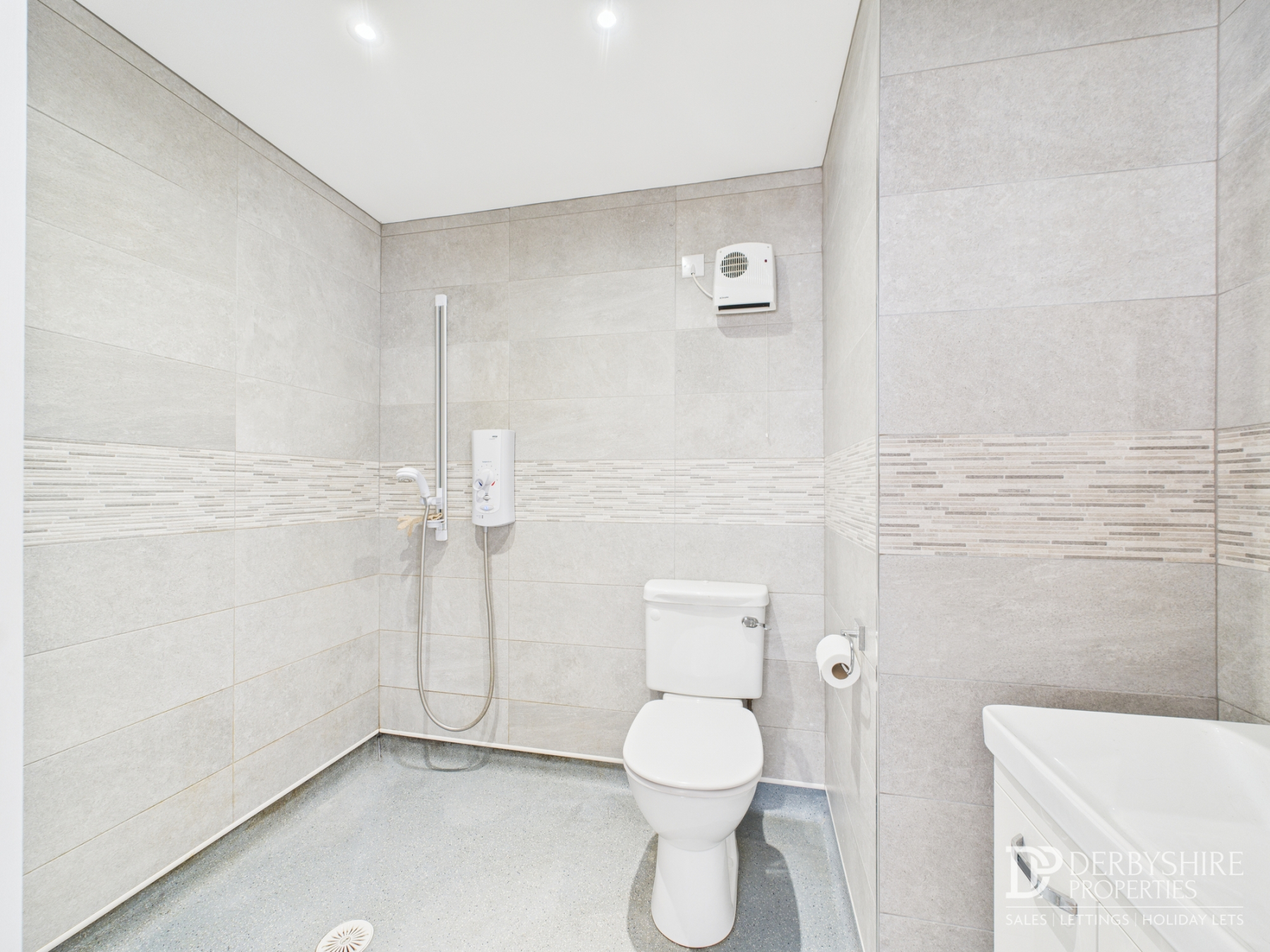 2.47m x 1.68m (8' 1" x 5' 6") A tiled wet room with shower attachment, vanity handwash basin and low level WC.