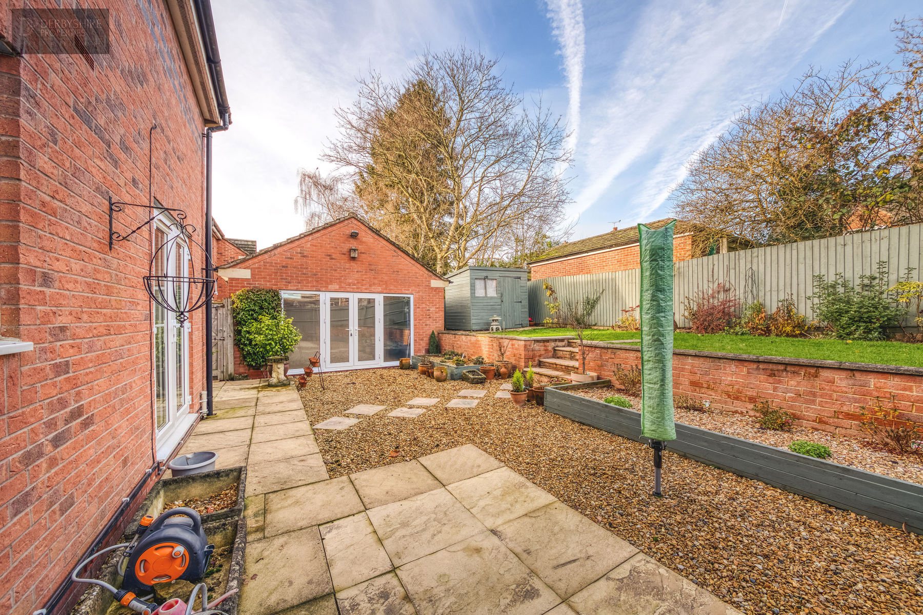 Externally, the property boasts driveway parking for multiple vehicles to the side elevation with access to converted detached Garage fitted with electric steel roller door. The rear enclosed garden is a wonderful space split into two separate tiers. First, an entertaining patio accessed via French doors from the house making it perfect for hosting in those summer evenings. There is sizeable lawn area on the second tier with mature shrubbery to the rear. The entire rear garden is secured by timber fencing making it ideal for those with pets and young children.