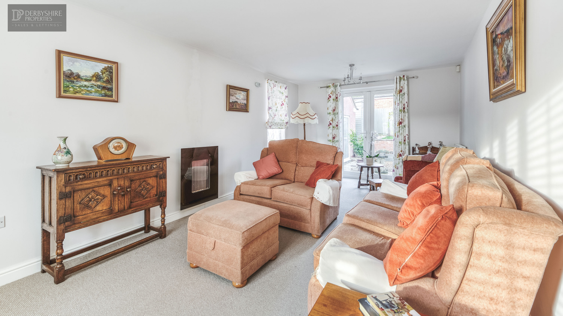20' 10" x 10' 7" (6.35m x 3.23m) Enjoying a dual aspect of double glazed window to front elevation with double glazed French doors accessing rear enclosed garden the Living Room also features two wall mounted radiators, wall mounted electric fireplace and carpeted flooring.