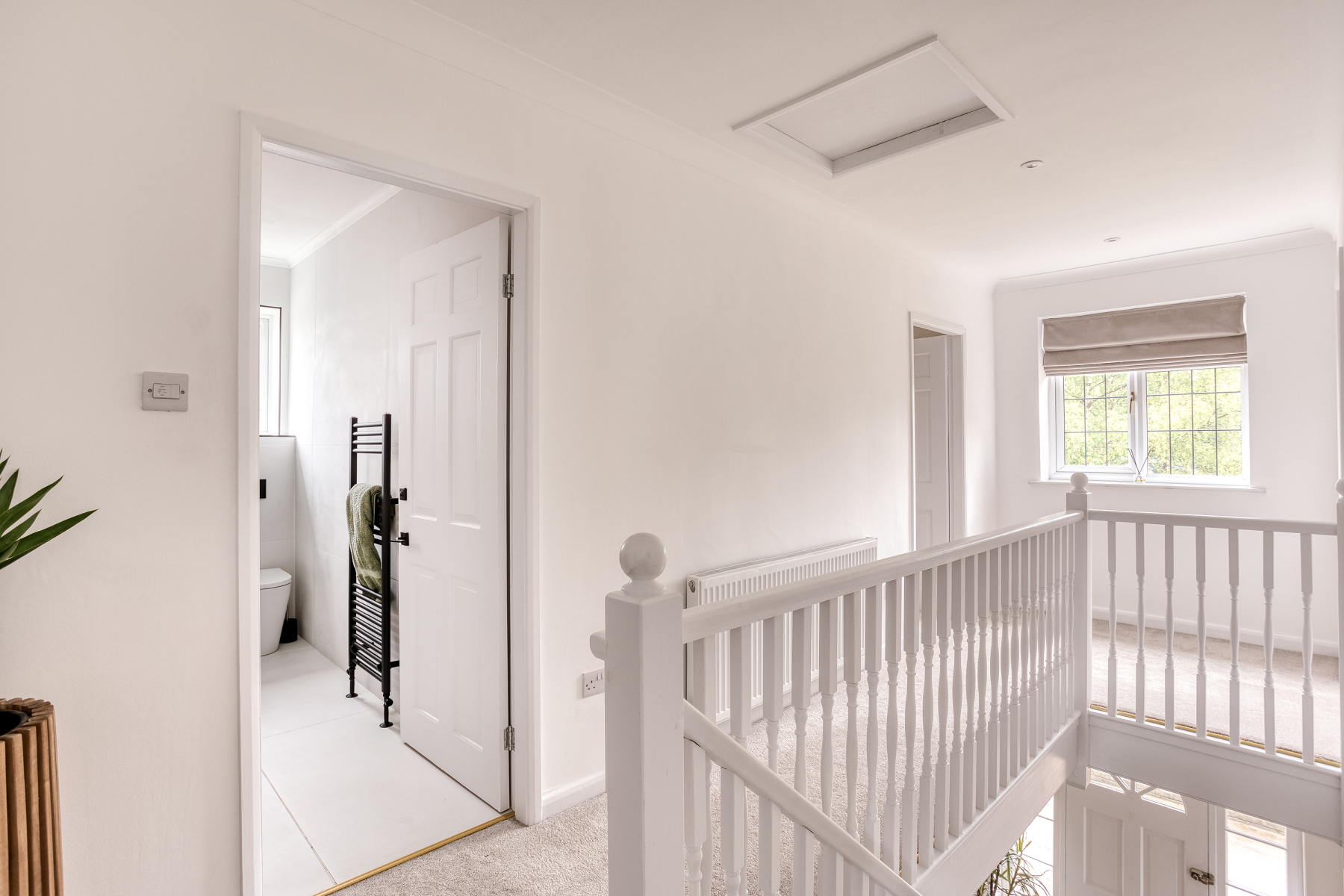 Upstairs, a striking gallery landing leads to four generously sized bedrooms, a contemporary family bathroom, and a luxurious en-suite to the master bedroom, designed with comfort and elegance in mind.