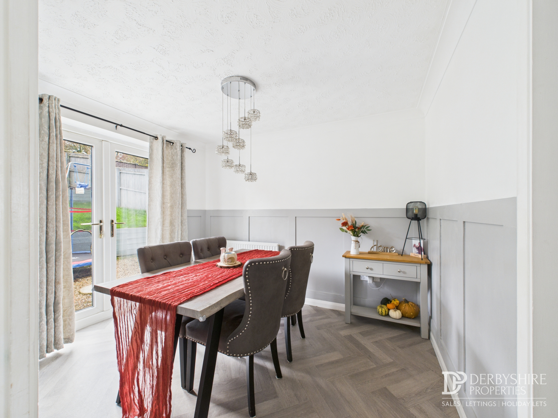 3.02m x 2.66m (9' 11" x 8' 9") With double glazed French doors to rear elevation, decorative panelling to walls, wall mounted radiator and wood effect flooring.