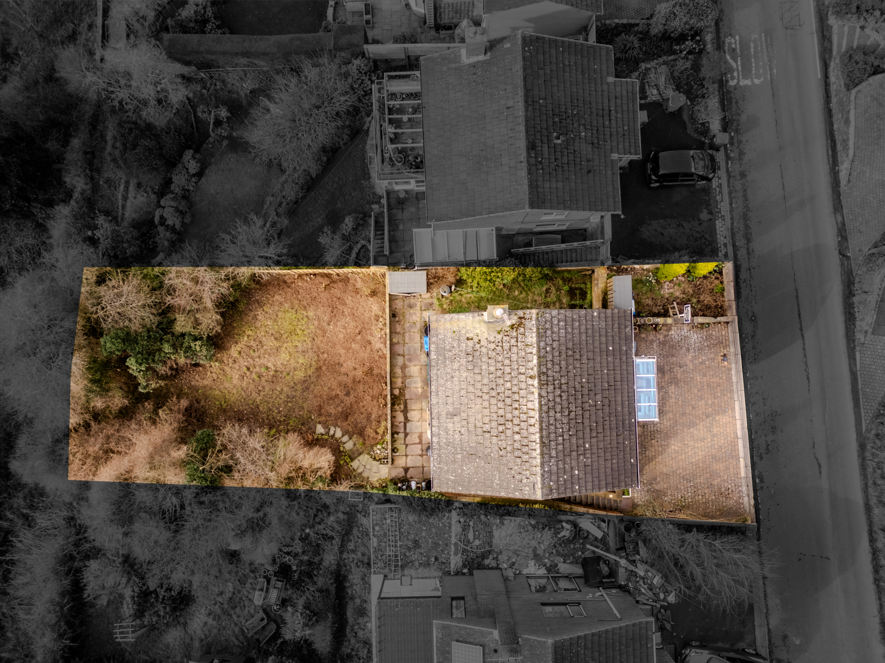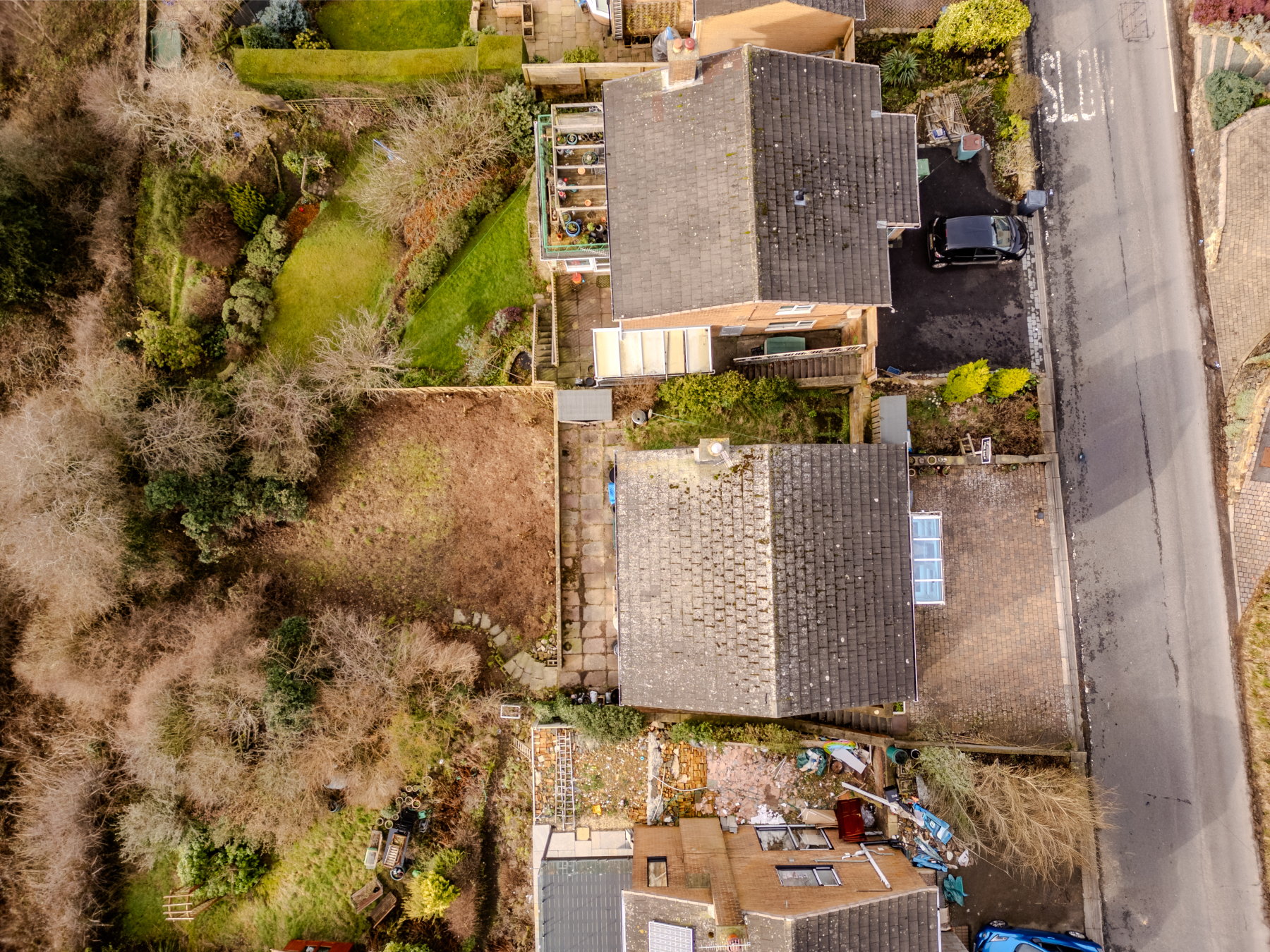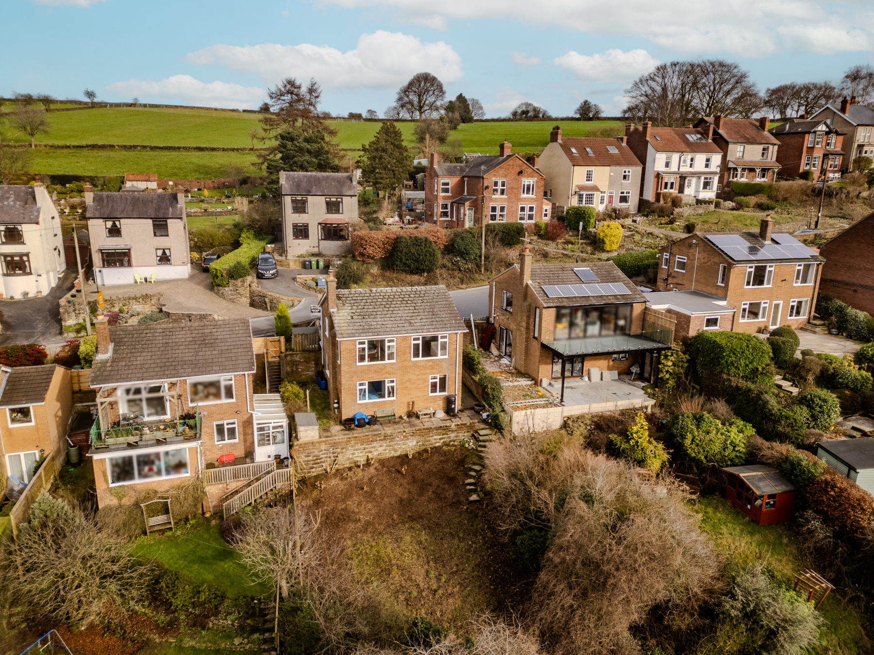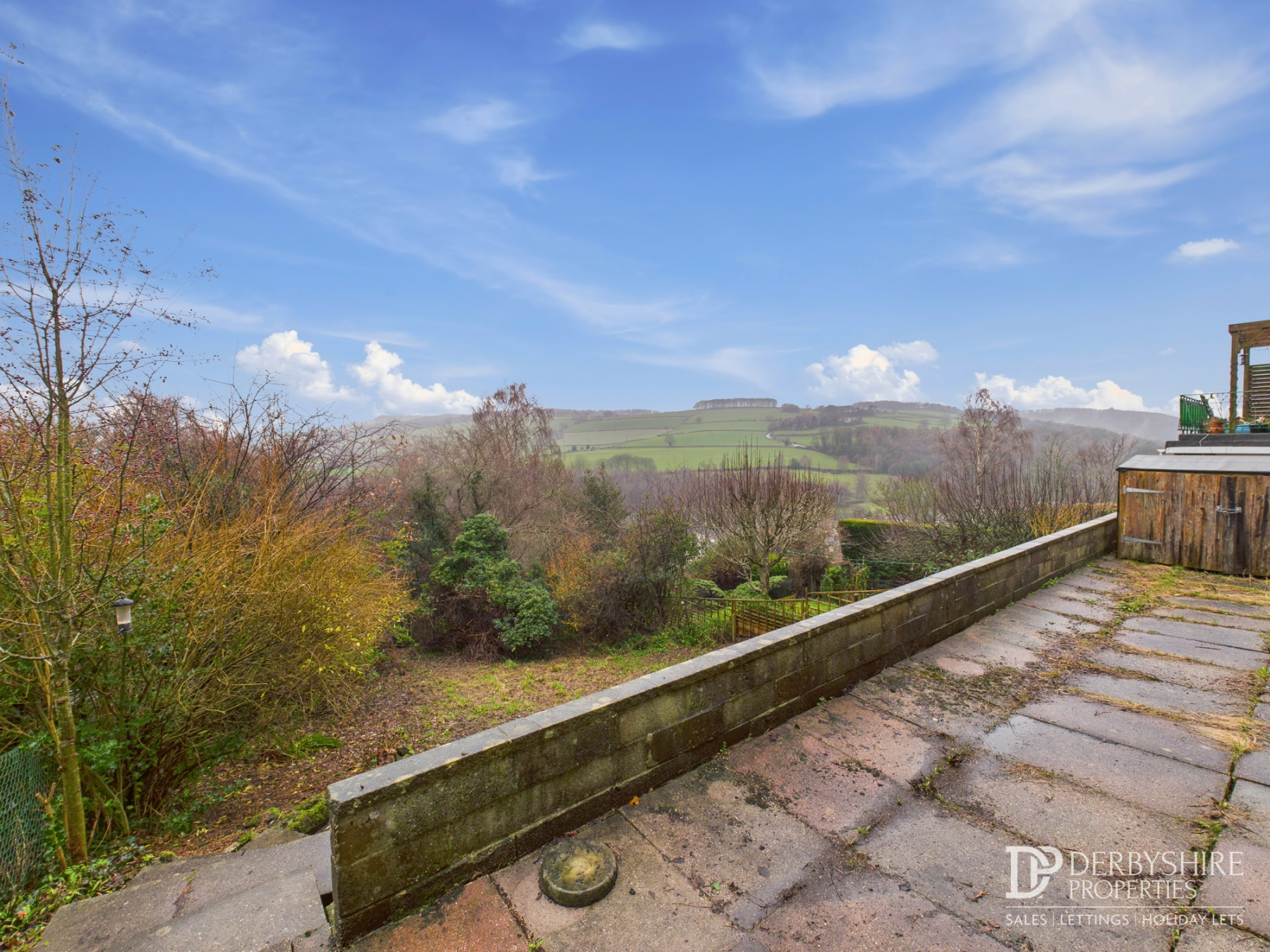The rear garden is a key feature of the property, offering a large wrap-around terrace ideal for outdoor entertaining and taking in the breath taking views across the Derwent Valley. Beyond this lies a substantial garden with a variety of mature shrubs and trees, offering a wealth of potential for landscaping while enjoying the elevated outlook.