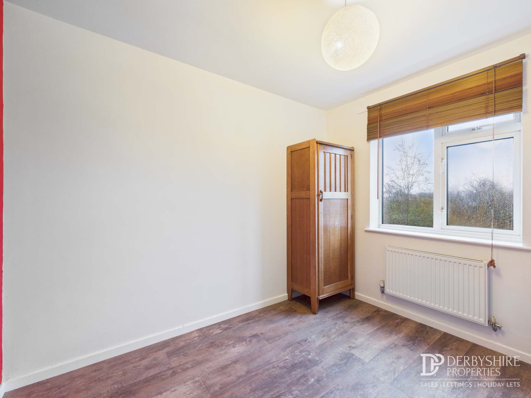Bedroom Three with double-glazed window to the side elevation, radiator and wood flooring.