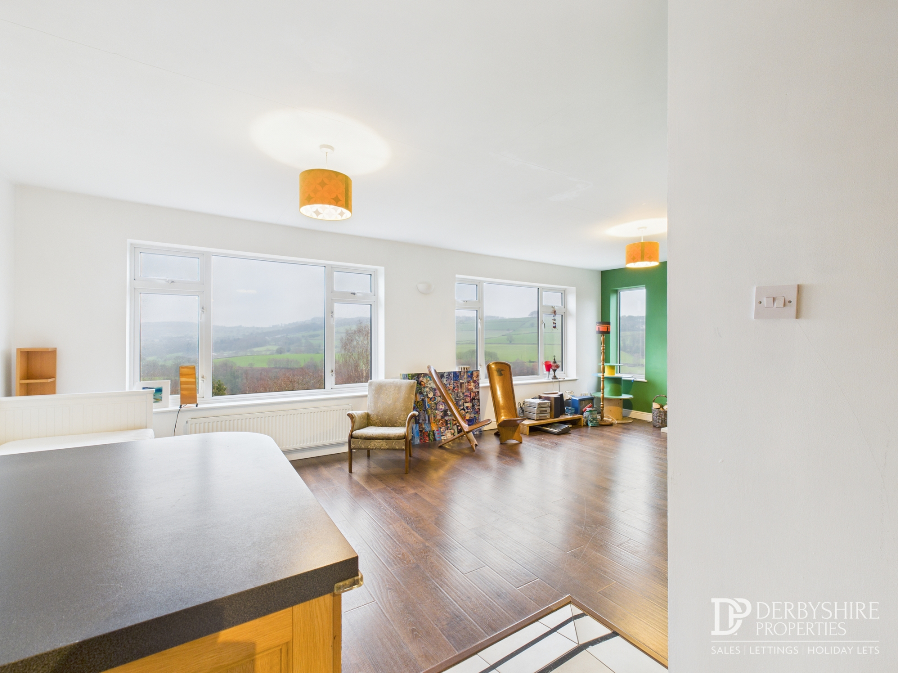 A particular highlight of the home is the superb L-shaped open-plan living kitchen diner, designed to maximise the elevated views across the Derwent Valley.