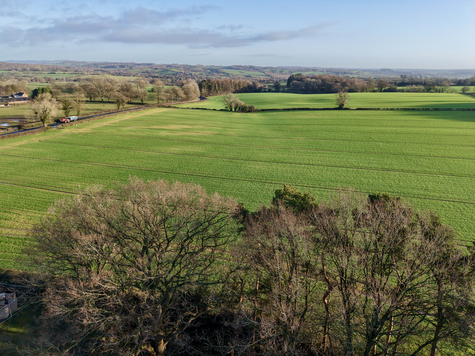 The master bedroom is a well-proportioned and light-filled room, enjoying dual front and side aspects, with far-reaching countryside views visible from the front elevation. The bedroom benefits from fitted wardrobes, a TV point, and access to a modern en-suite shower room.