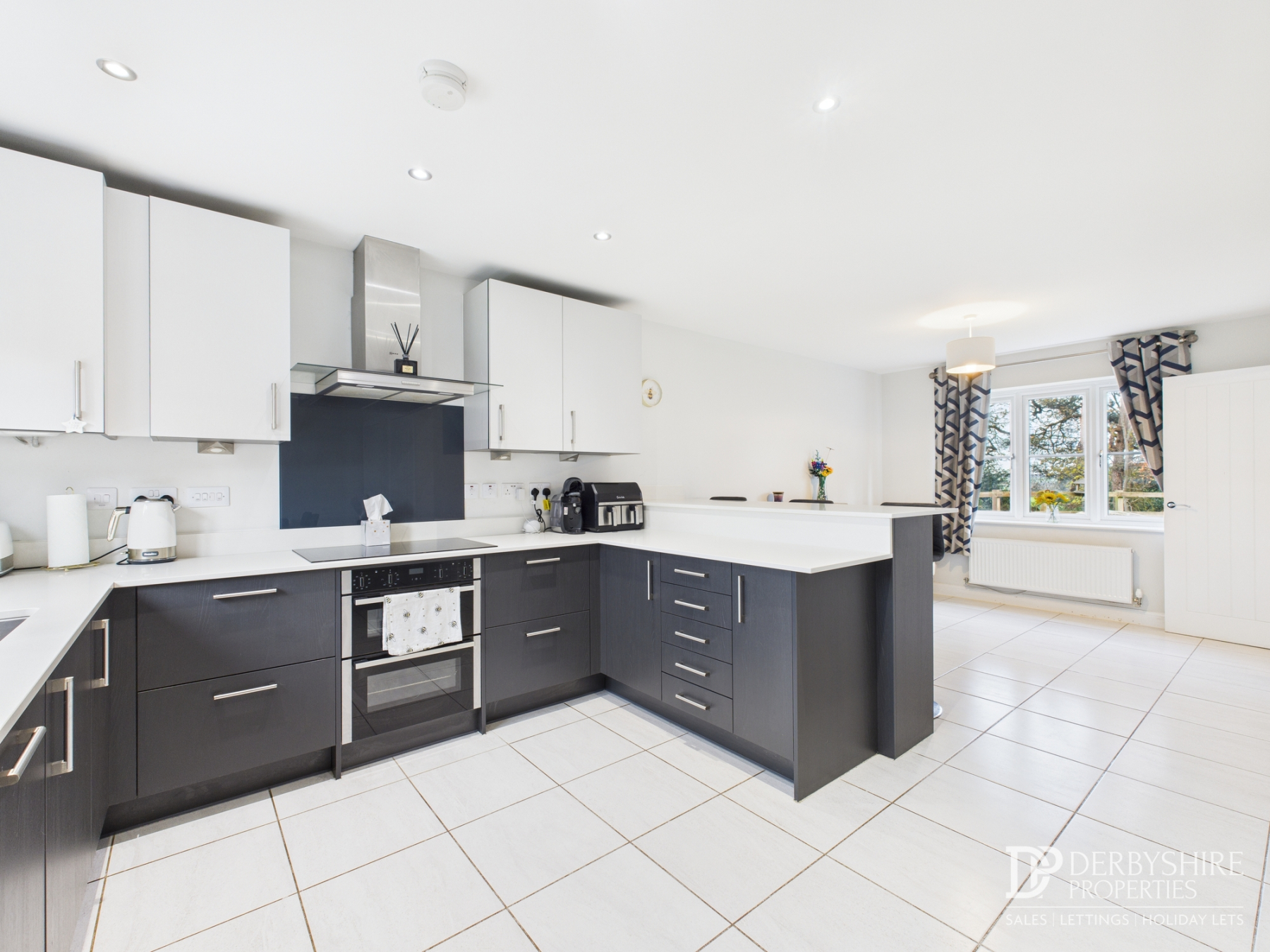 The accommodation is thoughtfully arranged and finished to a high standard throughout. A bright and spacious living room is complemented by a stunning open-plan kitchen and dining area, which truly forms the heart of the home. The modern kitchen is fitted with sleek cabinetry, granite work surfaces and a breakfast bar, creating a stylish yet practical space ideal for both everyday living and entertaining.