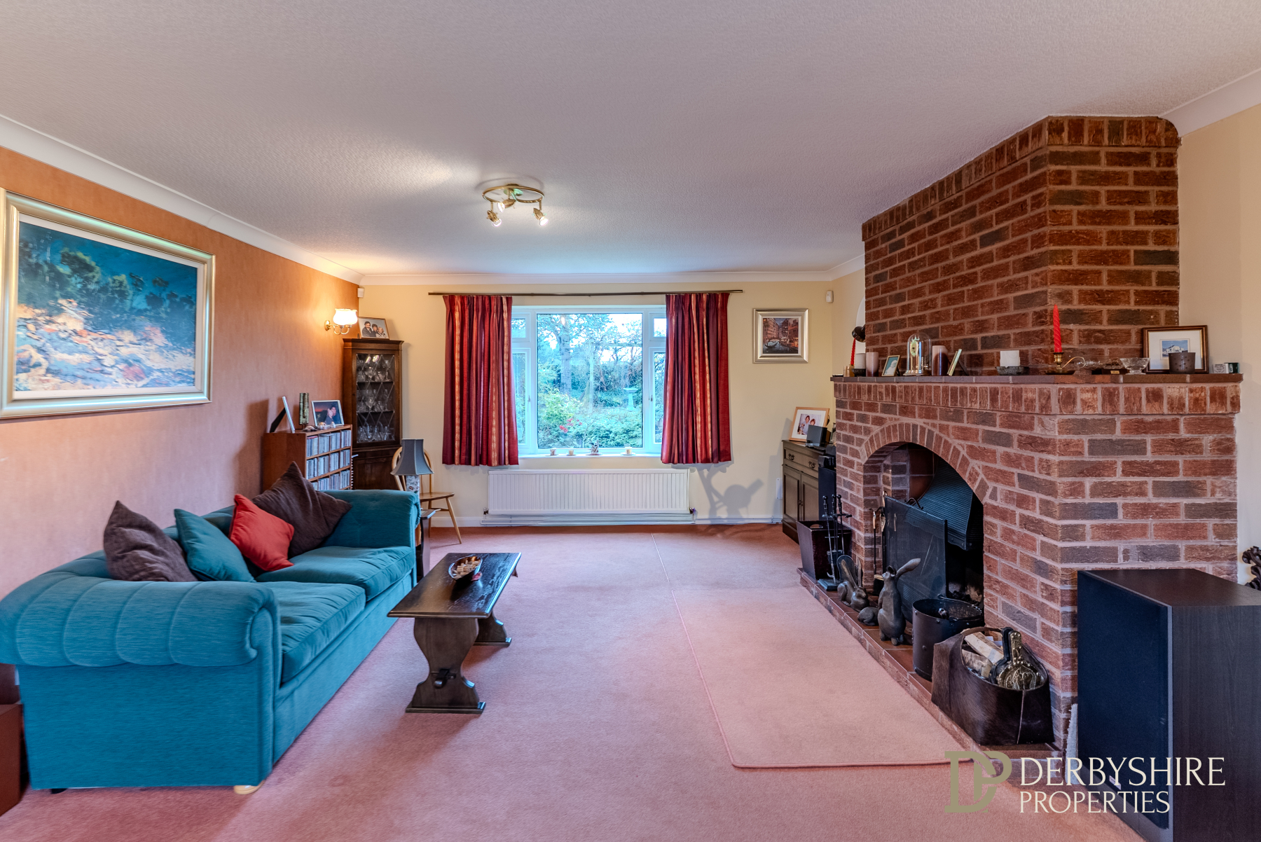 A generous and light-filled reception room benefitting from dual-aspect windows to both front and rear elevations. Features include wall-mounted radiators, decorative coving, TV point and ambient wall lighting. The focal point is an inglenook-style fireplace housing an inset fire, set upon a raised tiled hearth.