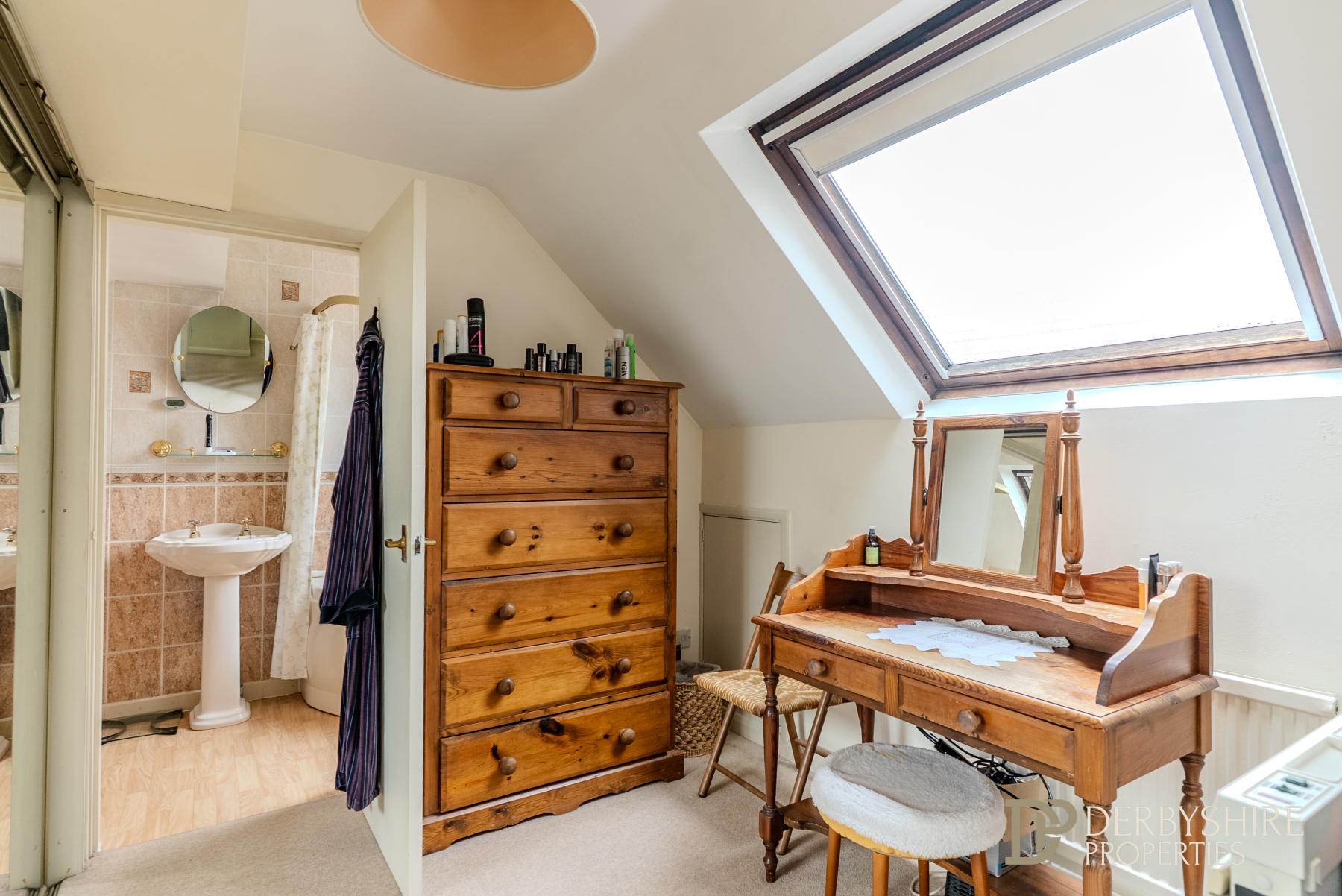 With Velux roof window to the rear, fitted wardrobes with mirrored sliding doors, storage within the eaves and wall-mounted radiator. Door leading to: