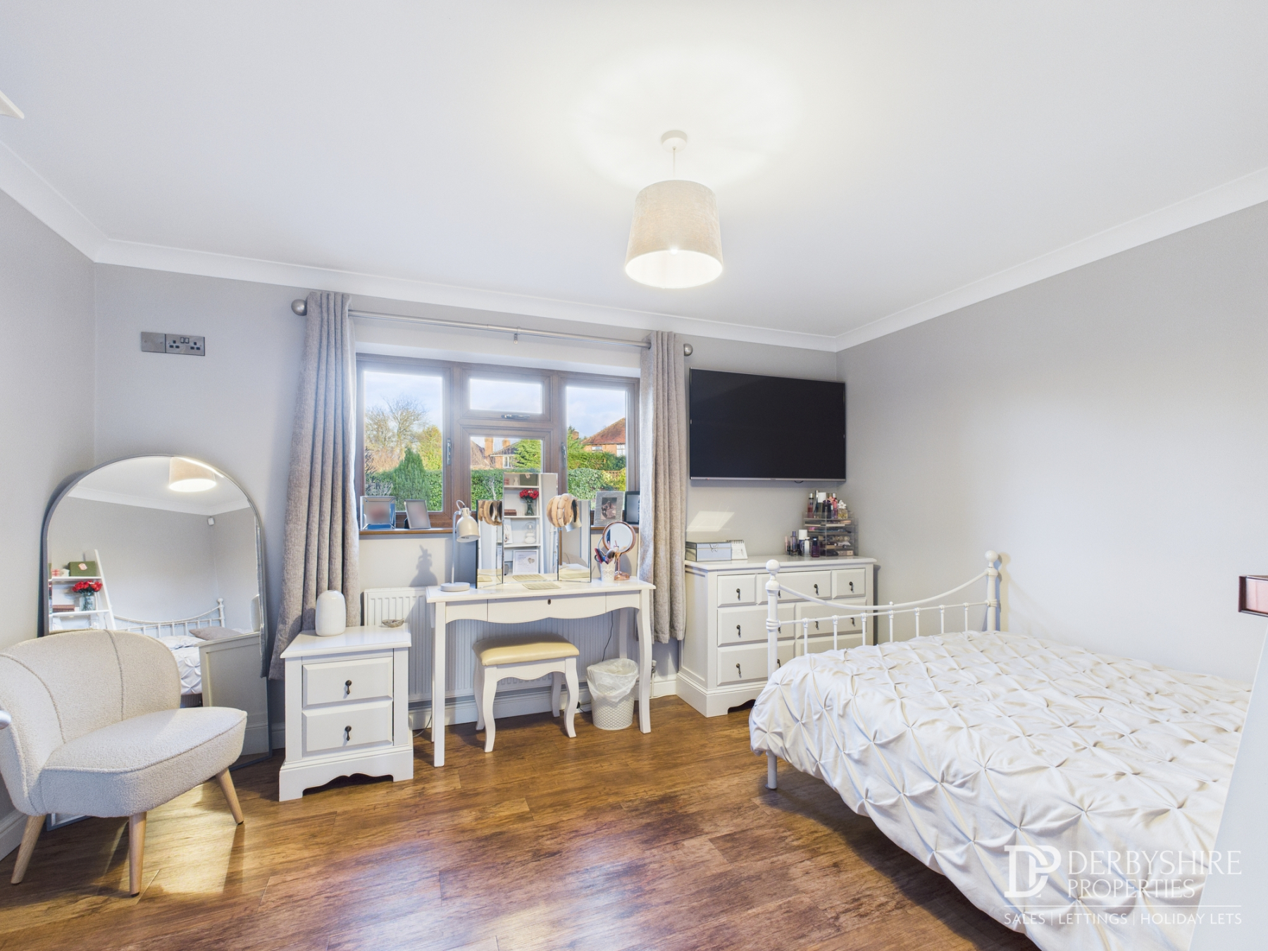 Double bedroom with side window, radiator, TV point, decorative coving and Karndean flooring. Door to: