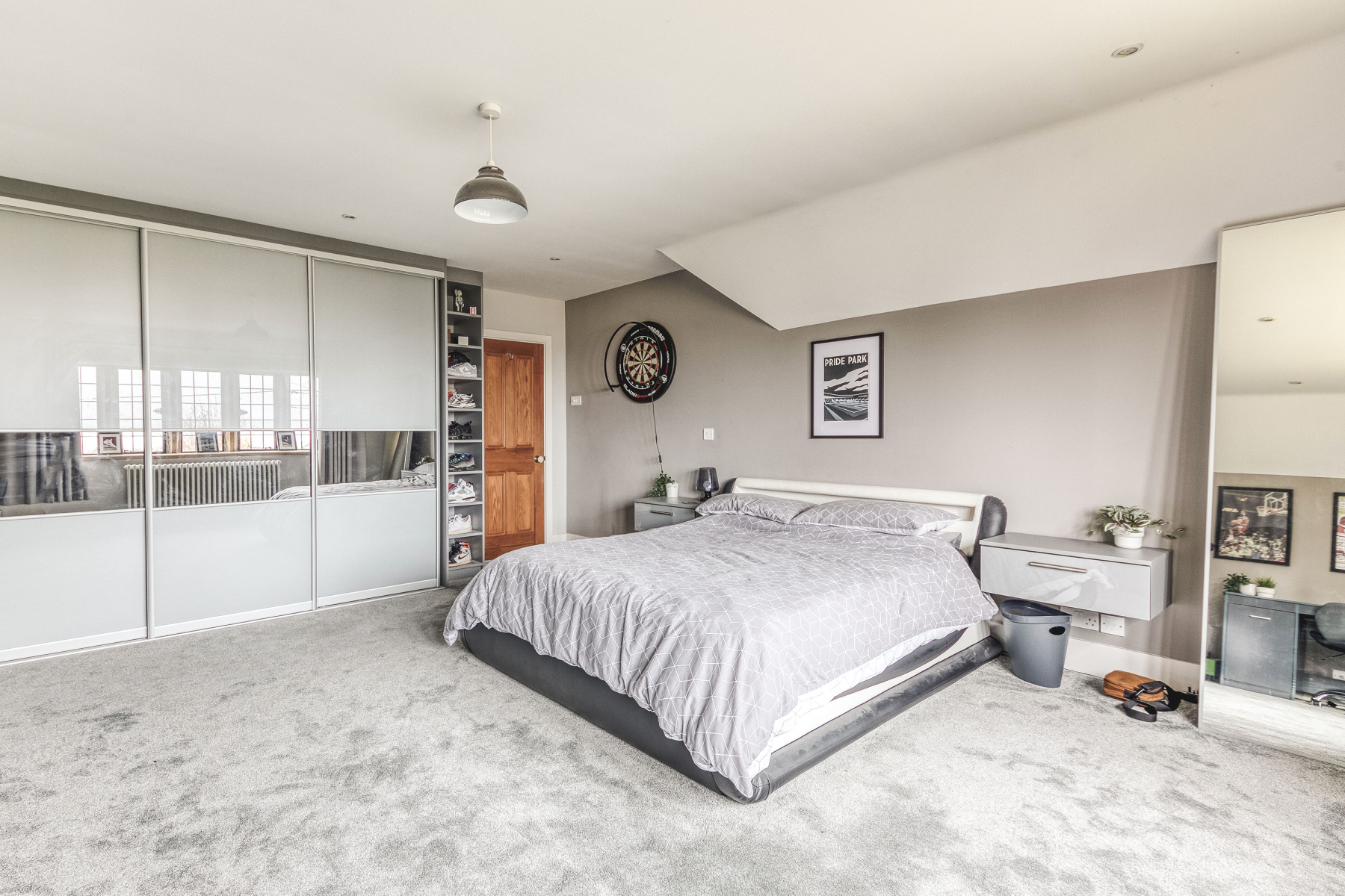 11' 10" x 11' 10" (3.61m x 3.61m) Original window with exposed timber to the side elevation, period style radiator and range of fitted wardrobes providing ample storage and hanging space.