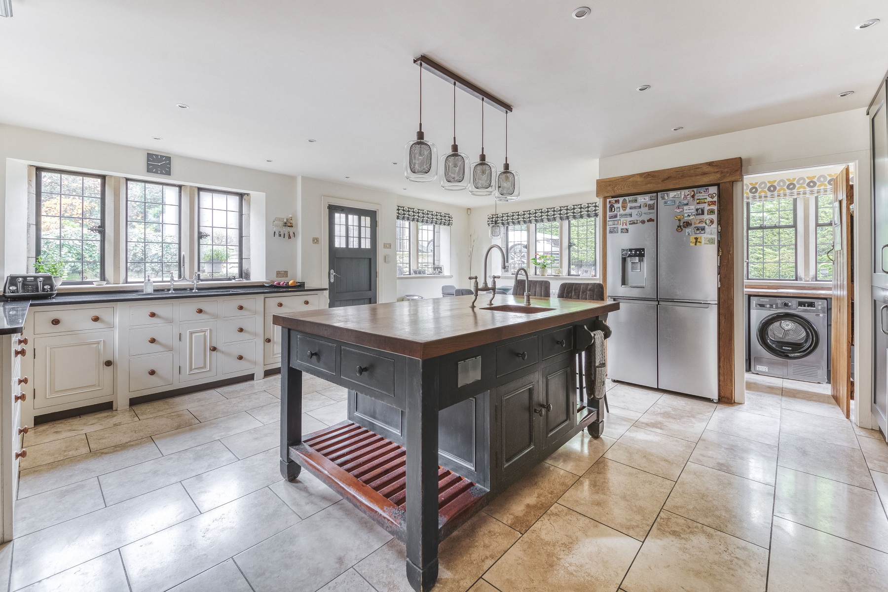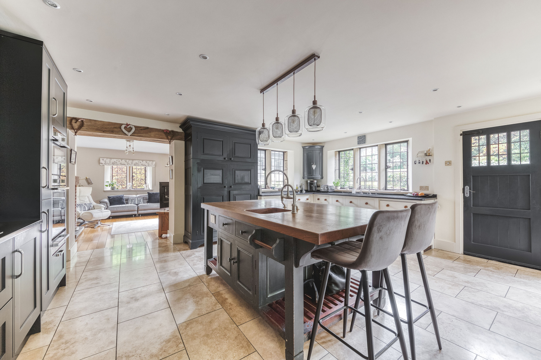 19' 0" x 21' 9" (5.79m x 6.63m) This recently refitted and remodelled kitchen creates a wonderful social space for all the family with a range of contrasting wall and base mounted units, granite work surface incorporating moulded sink with period style hot and cold water taps. The kitchen incorporates new appliances Including NEFF double electric oven, plate warmer, induction hob with pull-out extractor canopy and wine cooler. Space and plumbing for American style fridge freezer, exposed beams to ceiling, spotlighting, porcelain tiled floor covering with underfloor heating and original windows to the rear and side elevations. The focal point to the kitchen is a superb breakfast island with seating space, storage and bespoke sink with feature hot water tap. The dining area provide space for large dining table, period style radiator and hardwood door to the rear elevation.