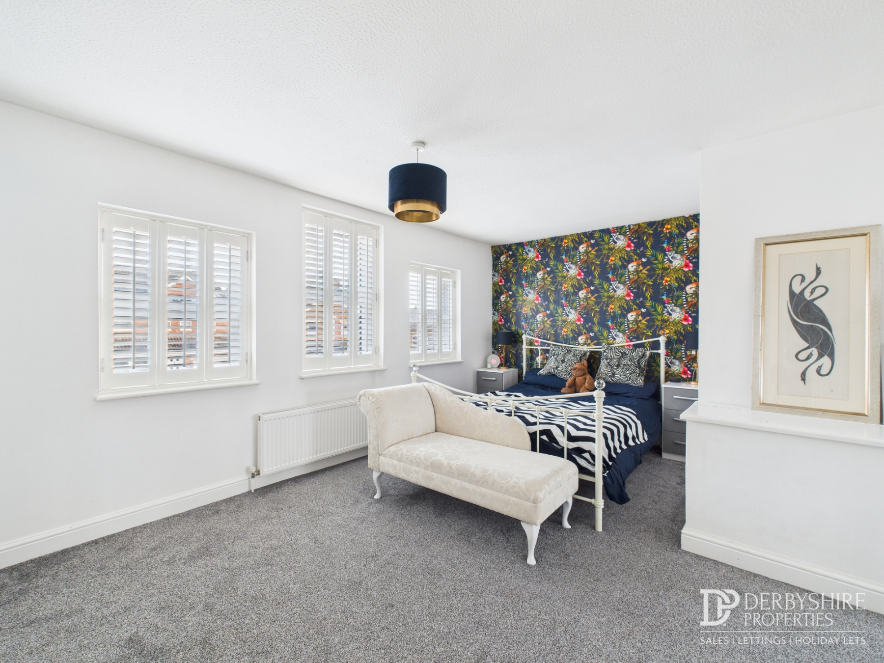 Featuring three double glazed windows with bespoke fitted shutters to the front elevation, wall-mounted radiator and fitted wardrobes providing useful storage and hanging space.