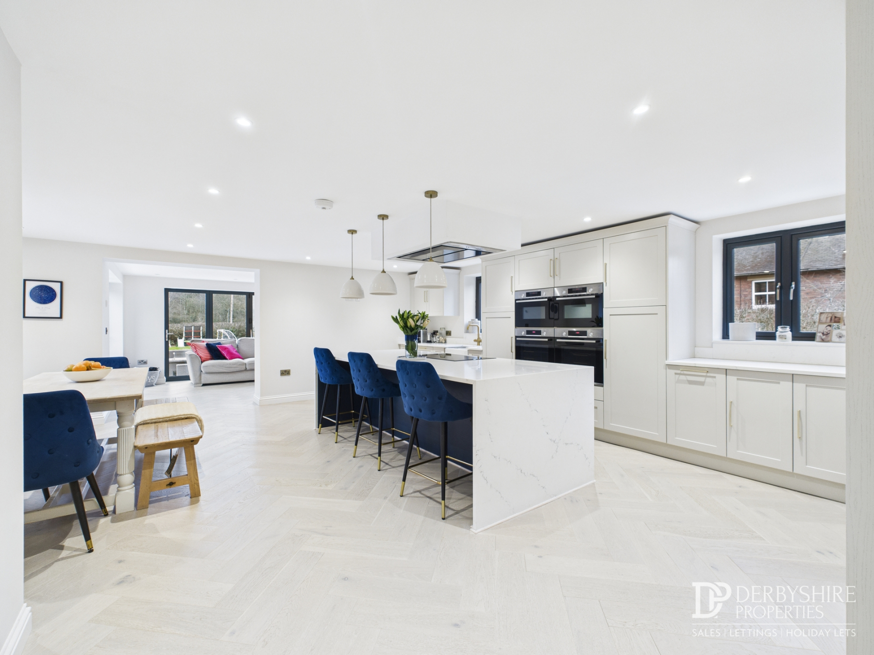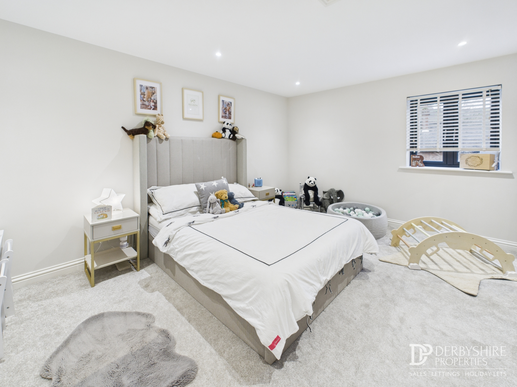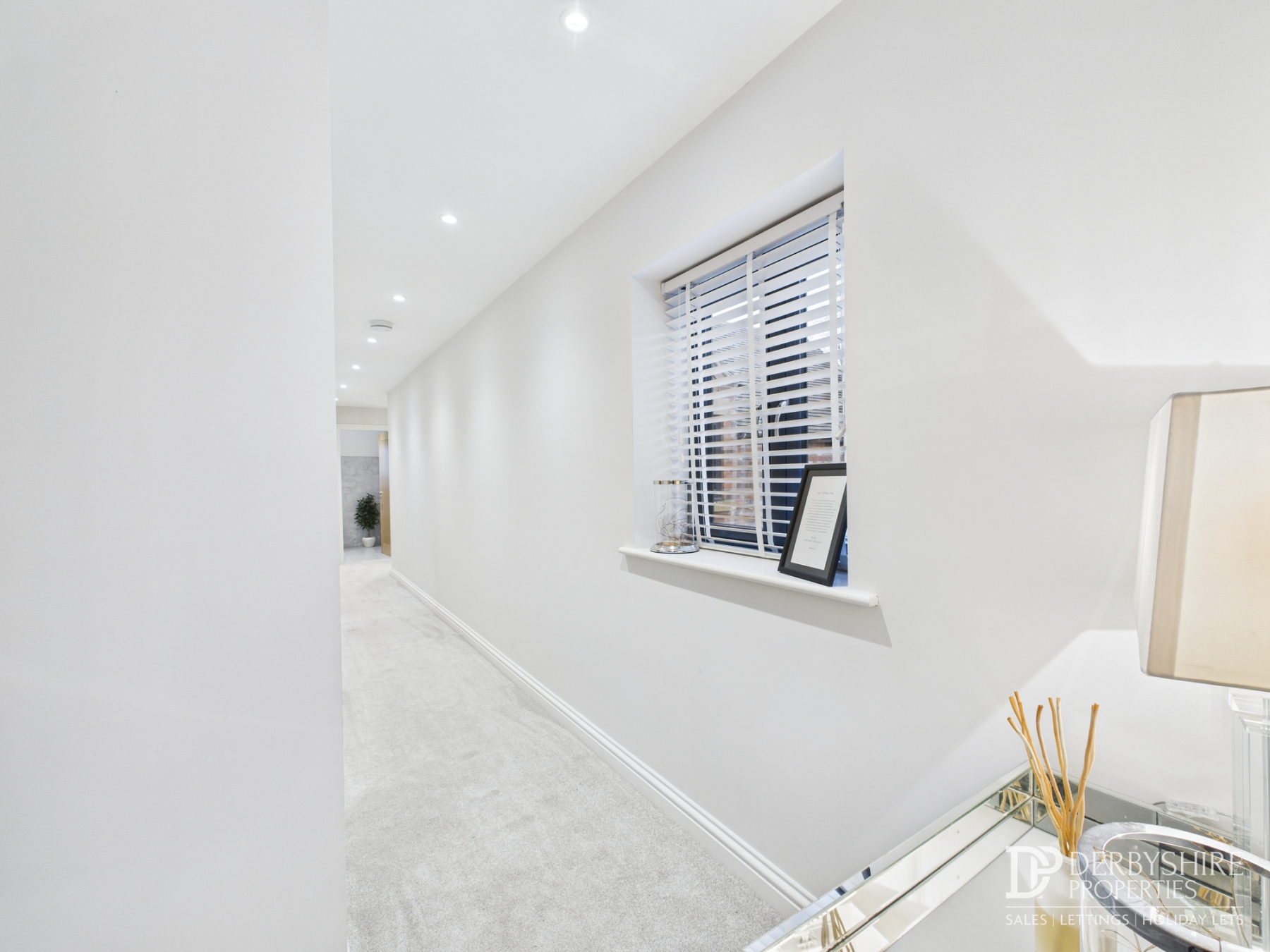Derbyshire Properties are delighted to introduce to the market this stunning, individually designed self-build home, completed approximately three years ago and finished to an exceptional standard throughout. Occupying a generous non-estate plot, the property offers impressive open-plan living, high-quality fixtures and fittings, including underfloor heating in every room. This property has contemporary design, perfectly suited to modern family life. The accommodation briefly comprises an impressive open-plan reception hall, utility/boot room, living room with bespoke media unit, guest cloakroom, and a spectacular open-plan living kitchen, complemented by a snug/playroom with bi-fold doors. To the first floor, a galleried landing provides access to five bedrooms, including a luxurious principal suite with hidden dressing area and a beautifully appointed en-suite shower room. A further guest bedroom benefits from its own en-suite, with the remaining bedrooms served by a high-specification family bathroom featuring a freestanding oval bath. Externally, the property occupies a substantial corner plot, enjoying landscaped gardens, countryside views, and extensive off-road parking. An internal inspection is essential to fully appreciate the quality, space, and setting of this outstanding home.