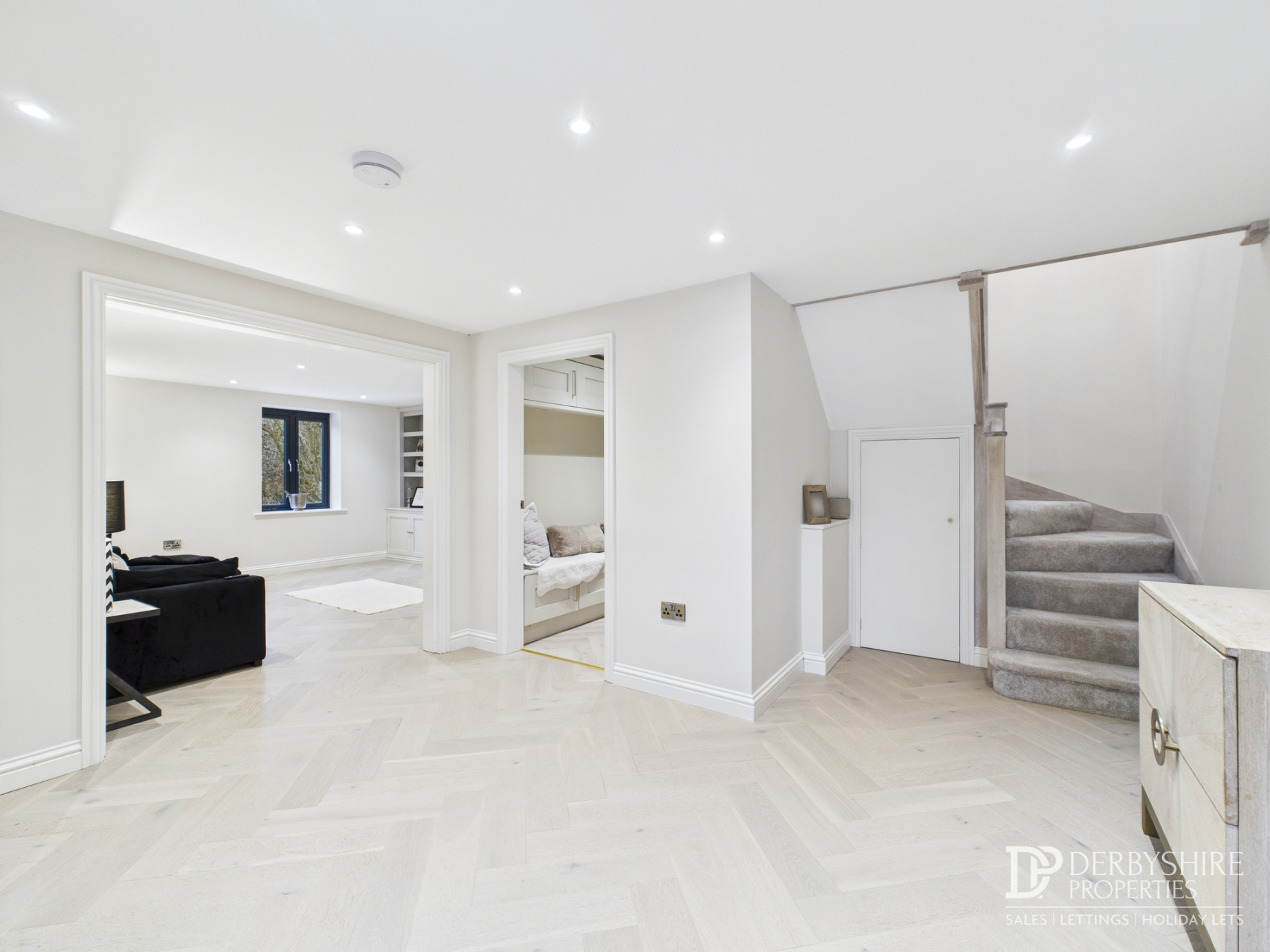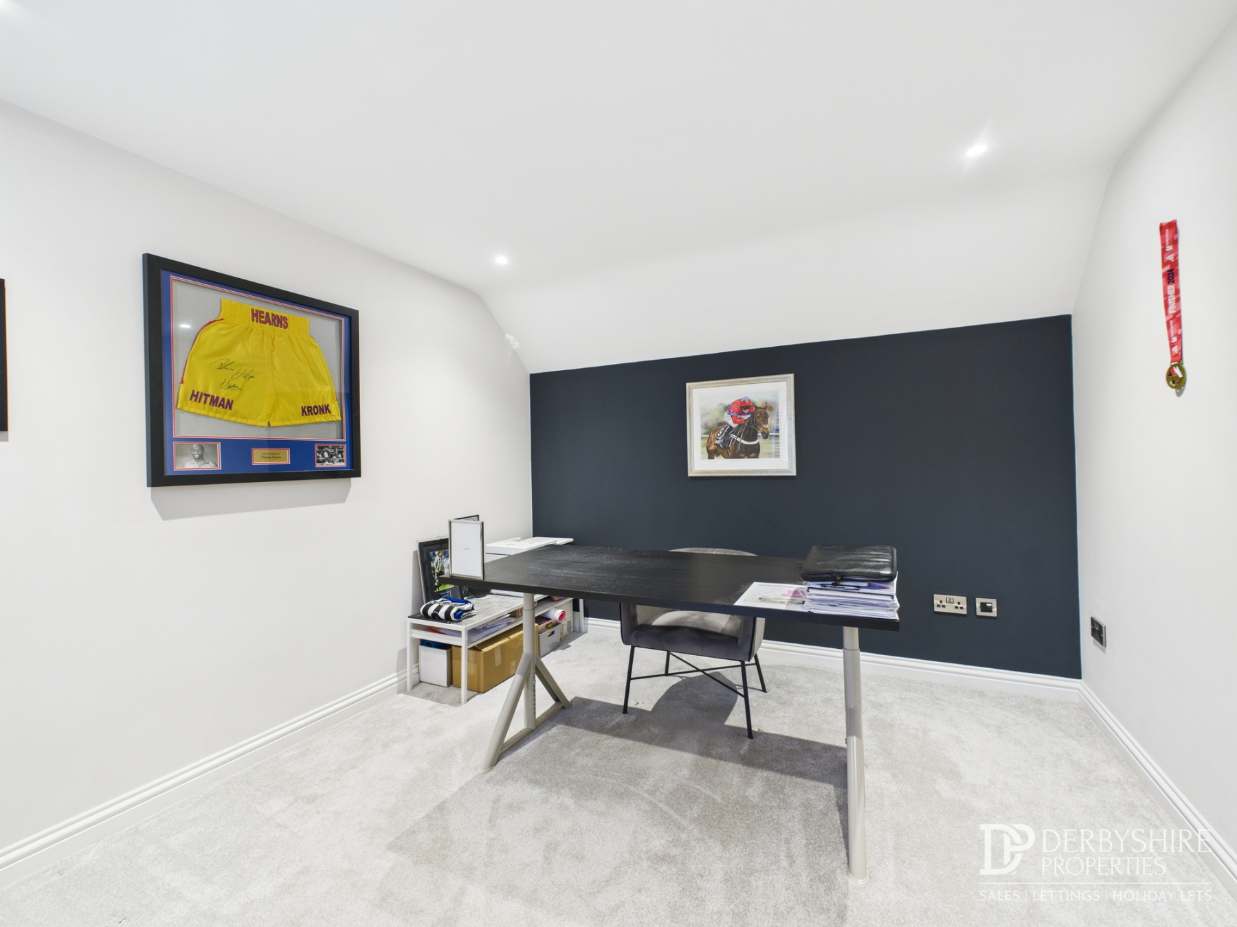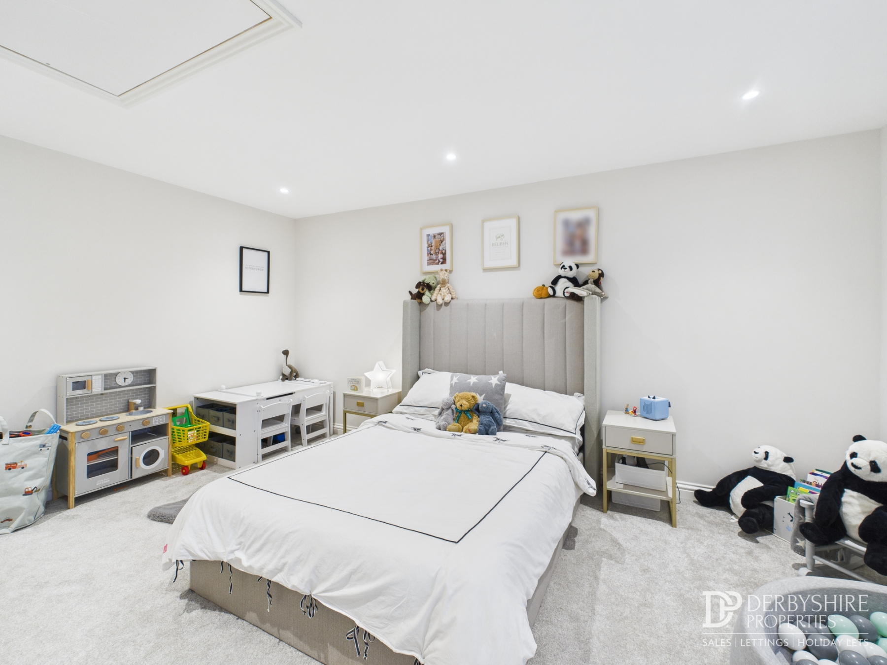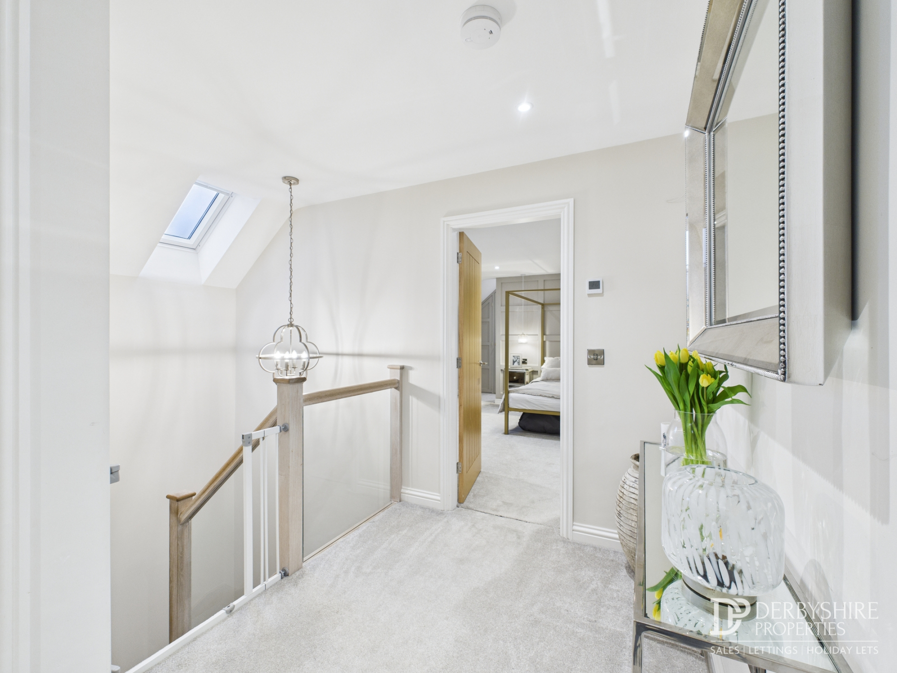 Derbyshire Properties are delighted to introduce to the market this stunning, individually designed self-build home, completed approximately three years ago and finished to an exceptional standard throughout. Occupying a generous non-estate plot, the property offers impressive open-plan living, high-quality fixtures and fittings, including underfloor heating in every room. This property has contemporary design, perfectly suited to modern family life. The accommodation briefly comprises an impressive open-plan reception hall, utility/boot room, living room with bespoke media unit, guest cloakroom, and a spectacular open-plan living kitchen, complemented by a snug/playroom with bi-fold doors. To the first floor, a galleried landing provides access to five bedrooms, including a luxurious principal suite with hidden dressing area and a beautifully appointed en-suite shower room. A further guest bedroom benefits from its own en-suite, with the remaining bedrooms served by a high-specification family bathroom featuring a freestanding oval bath. Externally, the property occupies a substantial corner plot, enjoying landscaped gardens, countryside views, and extensive off-road parking. An internal inspection is essential to fully appreciate the quality, space, and setting of this outstanding home.