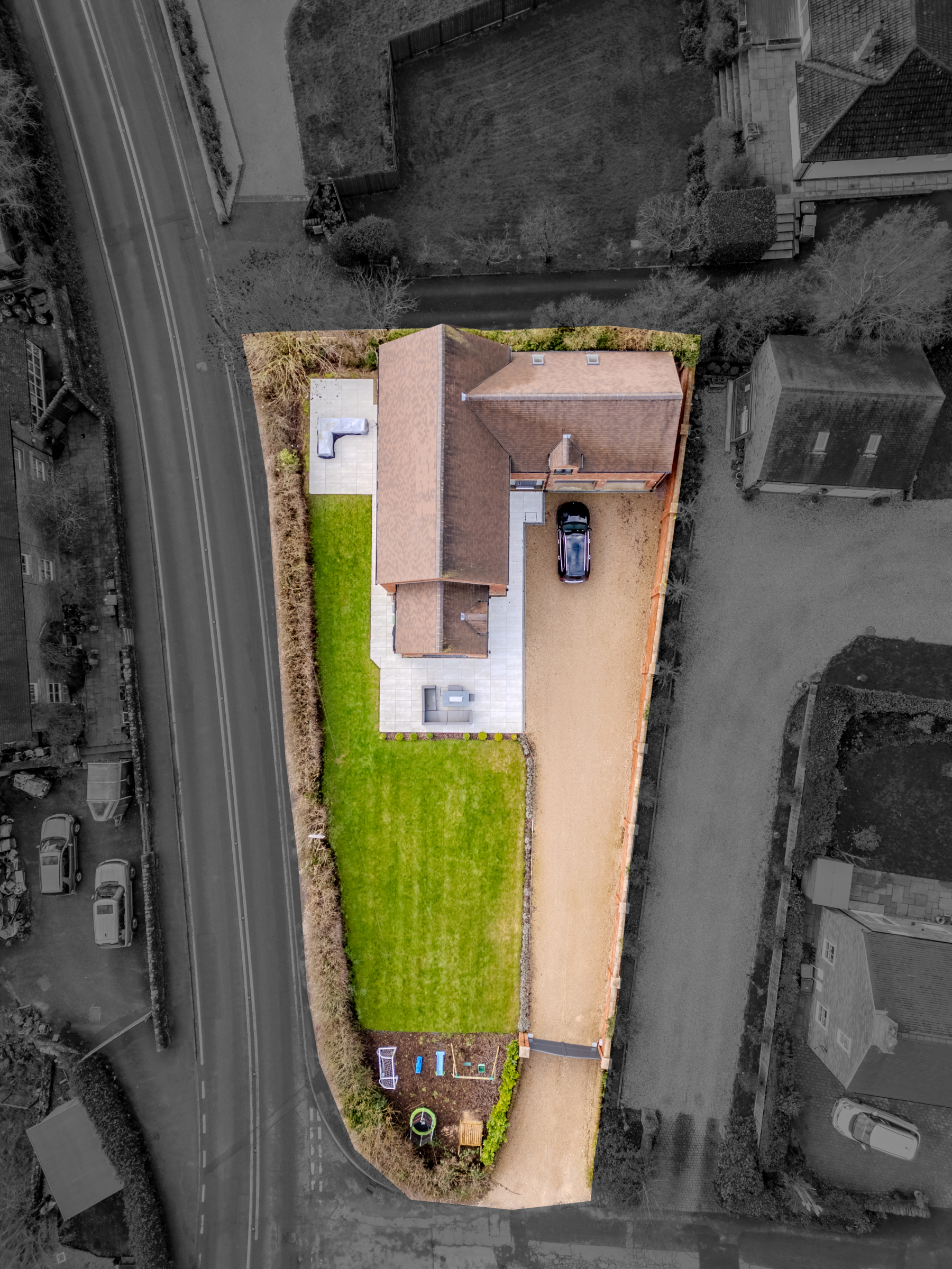 The landscaped gardens are predominantly located to the front and side elevations, featuring manicured lawns, lavender borders, hedgerow and wall boundaries, and outstanding countryside views. A large porcelain-tiled entertaining terrace sits adjacent to the garden room, ideal for outdoor dining. Further features include external lighting, EV charging point and outside tap.